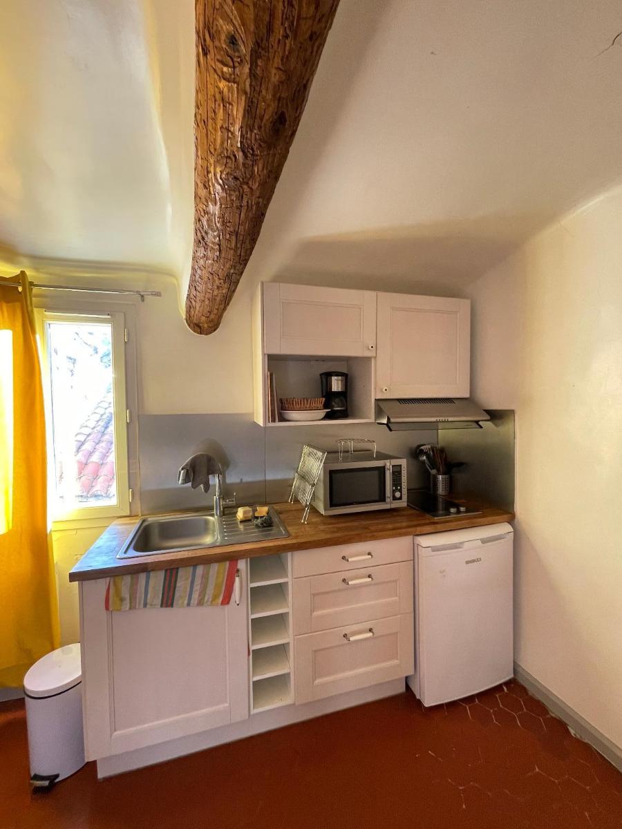 Aix En Provence - centre ville - cours Saint Louis - 1er étage d'un petit immeuble, sans ascenseur. Studio meublé de 19.83 avec pièce à vivre avec lit - mezzanine, kitchenette aménagée et équipée (plaques de cuisson, réfrigérateur TOP, micro-ondes), salle...