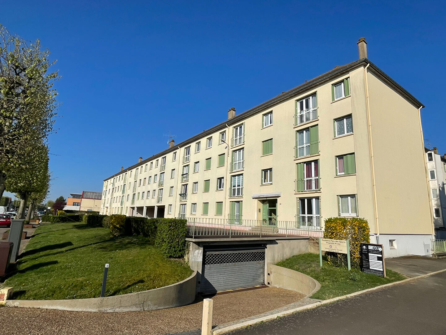 Quartier Courteille - RES PARC DES SPORTS - F.3 AGREABLE EN REZ-DE-CHAUSSEE : entrée, séjour, cuisine avec éléments, une hotte, 2 chambres, salle de bains . PARKING EN SOUS-SOL. Libre .
