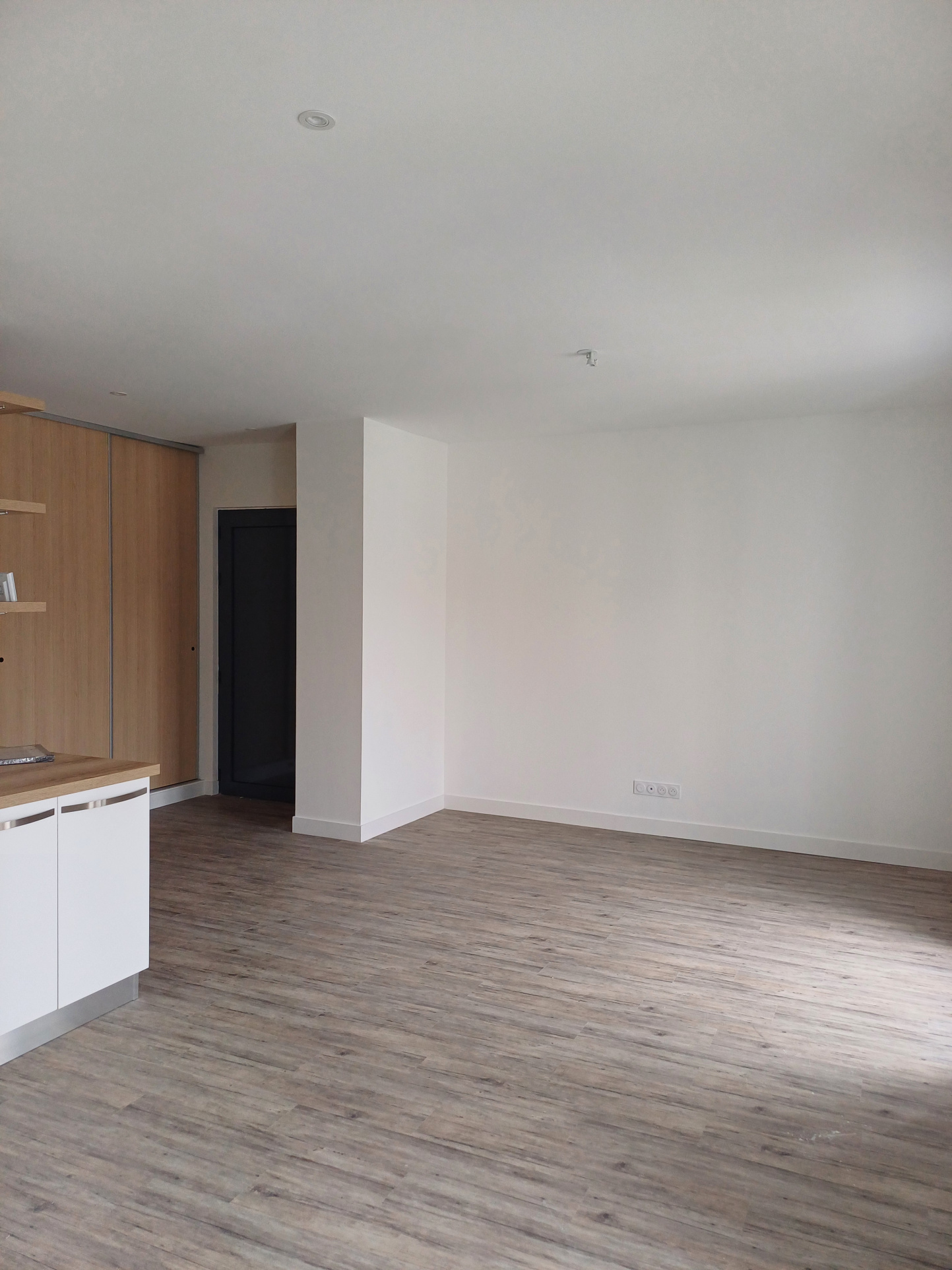 Une cuisine équipée de rangements hauts - un salon et un séjour - deux chambres dont une avec une penderie - une pièce à usage de petit bureau - un WC - une salle de bains