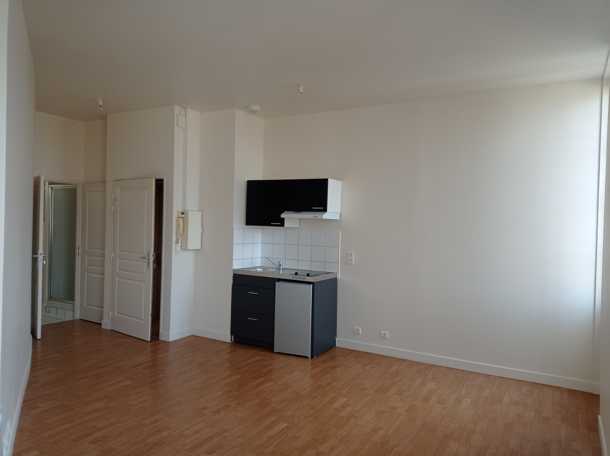 Entrée directement sur pièce principale (un placard à aménager), coin kitchenette équipée d'un réfri...