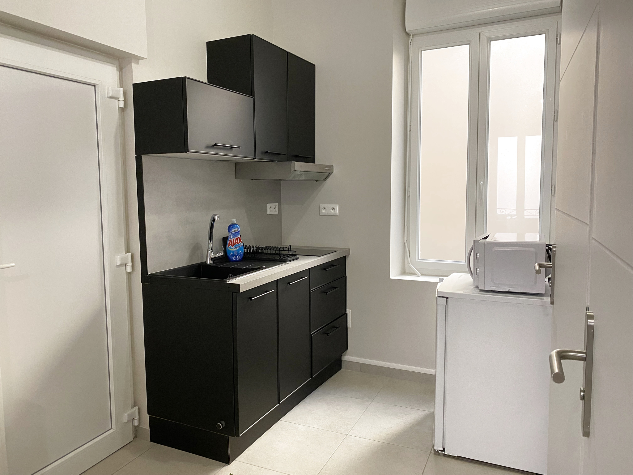 Il se compose d'une pièce principale lumineuse avec cuisine ouverte aménagée et équipée (hotte, plaque de cuisson, micro-onde, réfrigérateur top), ...