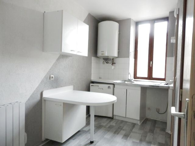 GANNAT centre, appartement avec un séjour ouvert sur cuisine aménagée, une salle d'eau, WC indépendant, équipé du double vitrage, chauffage électrique. Libre.