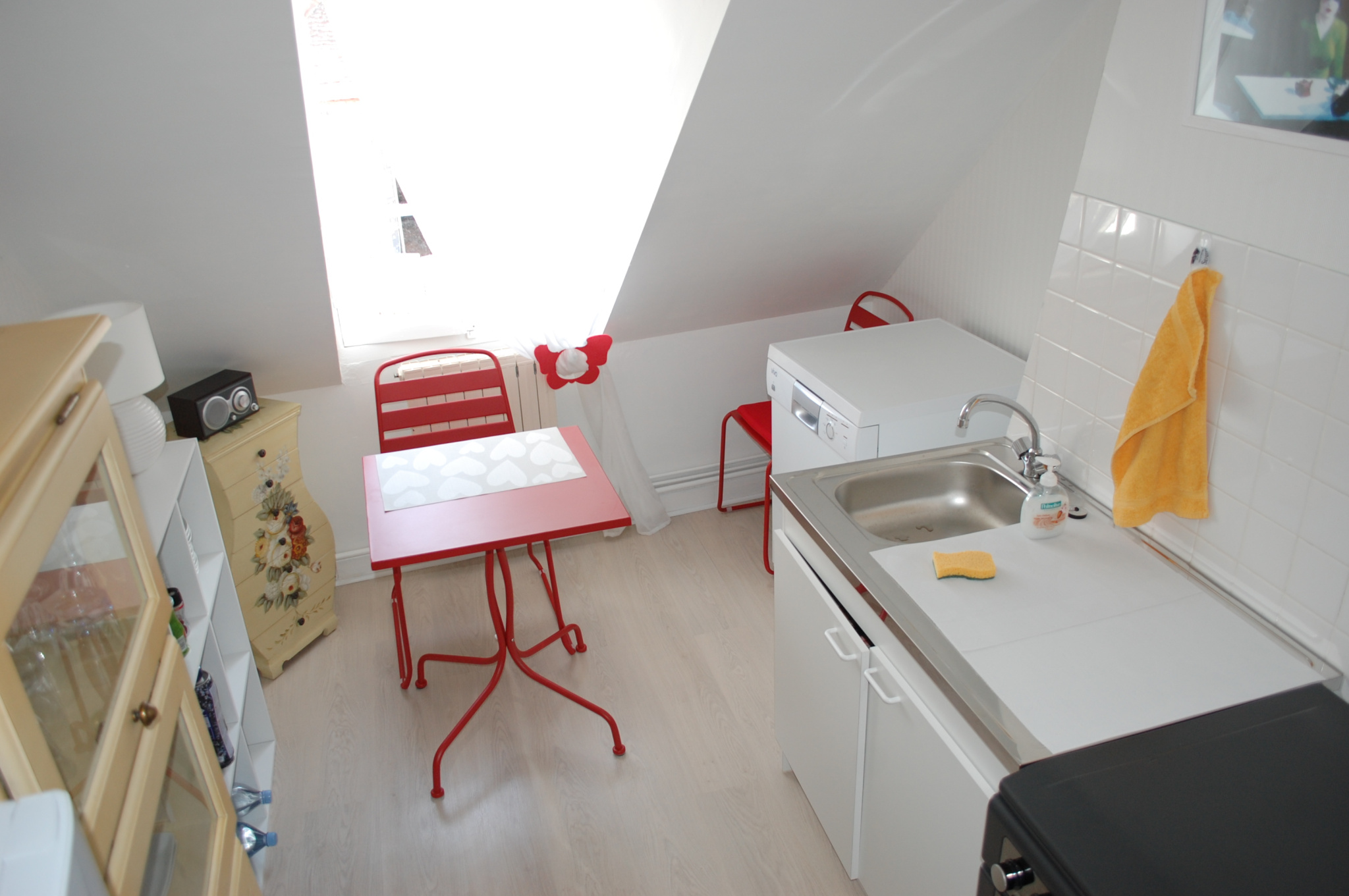 Appartement mansardé au 2ème étage d'un petit immeuble calme, comprenant entrée, cuisine, séjour, une chambre, salle d'eau et wc.
