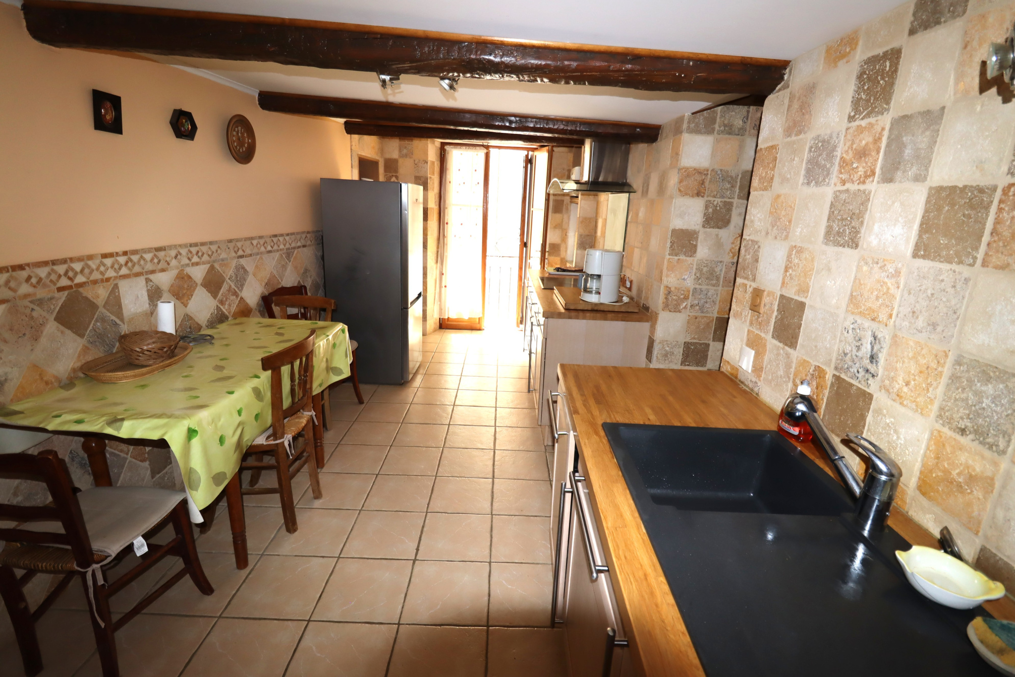 La cuisine dispose d'un réfrigérateur/congélateur, d'une plaque vitrocéramique, d'un four, d...