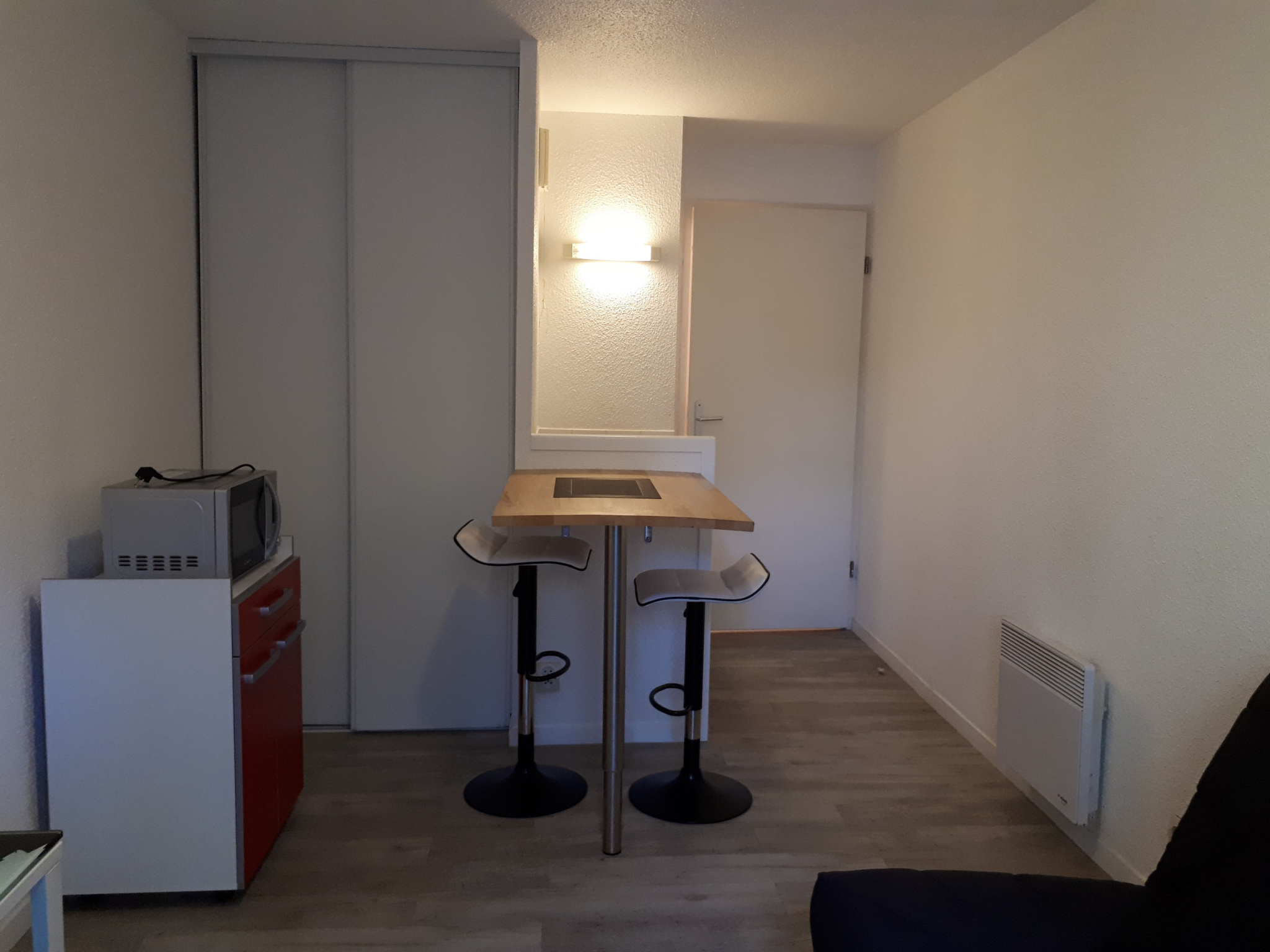 Entrée, séjour avec espace kitchenette, salle de bains avec WC. Dans une résidence avec laverie et accès internet !