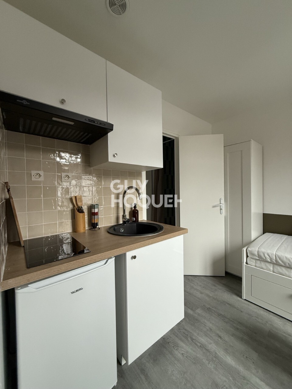 STUDIO situé quartier HENRIVILLE dans résidence sécurisée, comprenant cuisine aménagée ouverte sur séjour et salle d'eau avec WC.