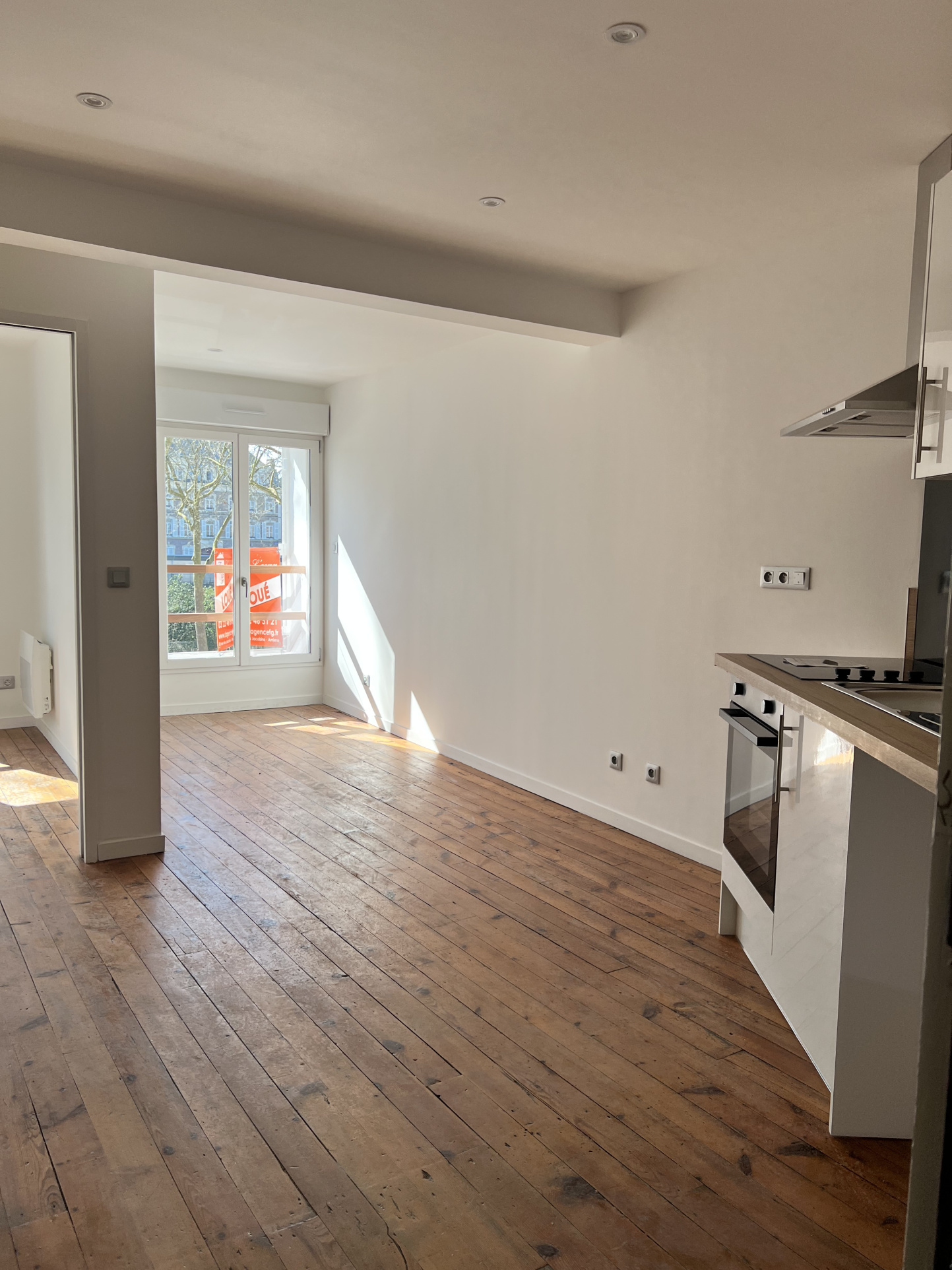 APPARTEMENT T2 situé PROCHE GARE ET CENTRE VILLE, comprenant une entrée, un coin cuisine, une pièce de vie spacieuse et une salle d'eau avec WC.