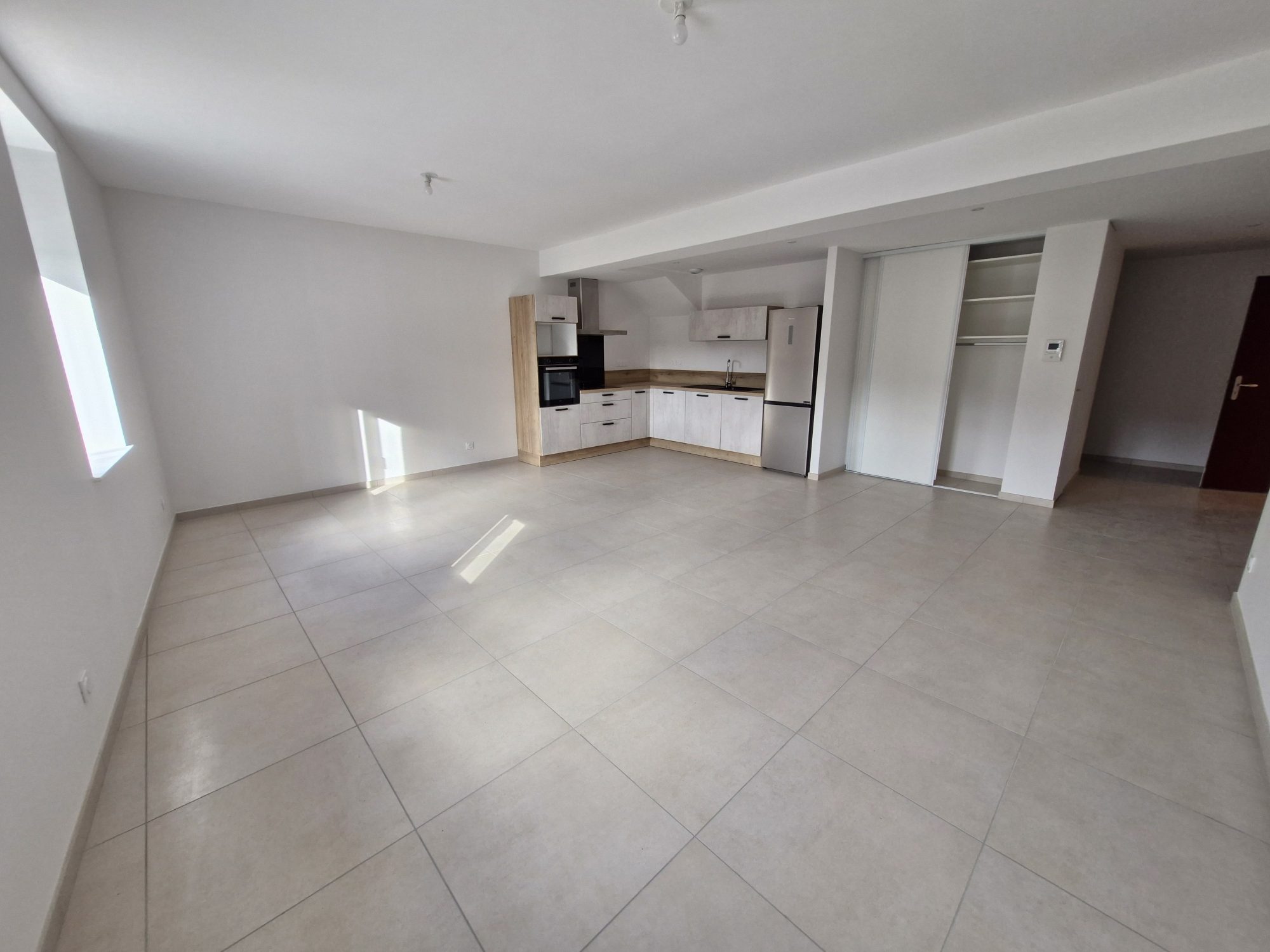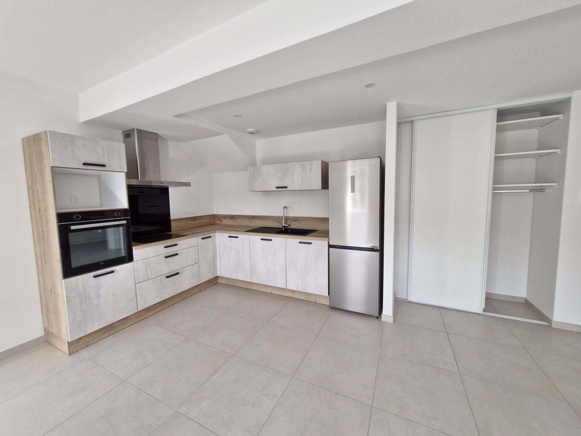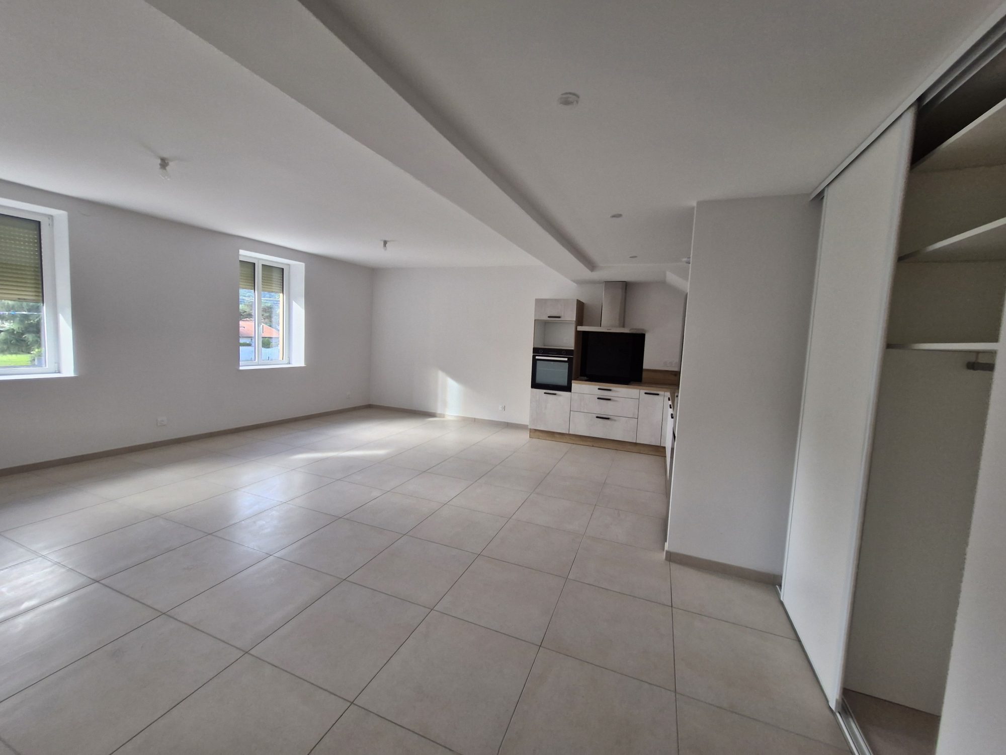 Appartement T4 duplex au 1er étage d'une bâtisse entièrement rénovée, située à la sortie Nord d'Ampuis - Rue de la Félodière : un logement d'une surface 99.80m² : Cuisine ouverte, aménagée et semi équipée (Four, plaque de cuisson, hotte, LV, fri...