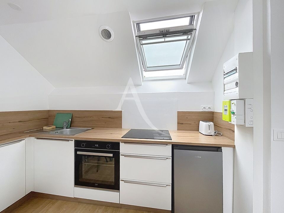 Appartement T1 Meublé, situé à Angers, rue Chèvre Dainville, avec une cuisine équipée et un système de chauffage individuel avec convecteurs électriques.