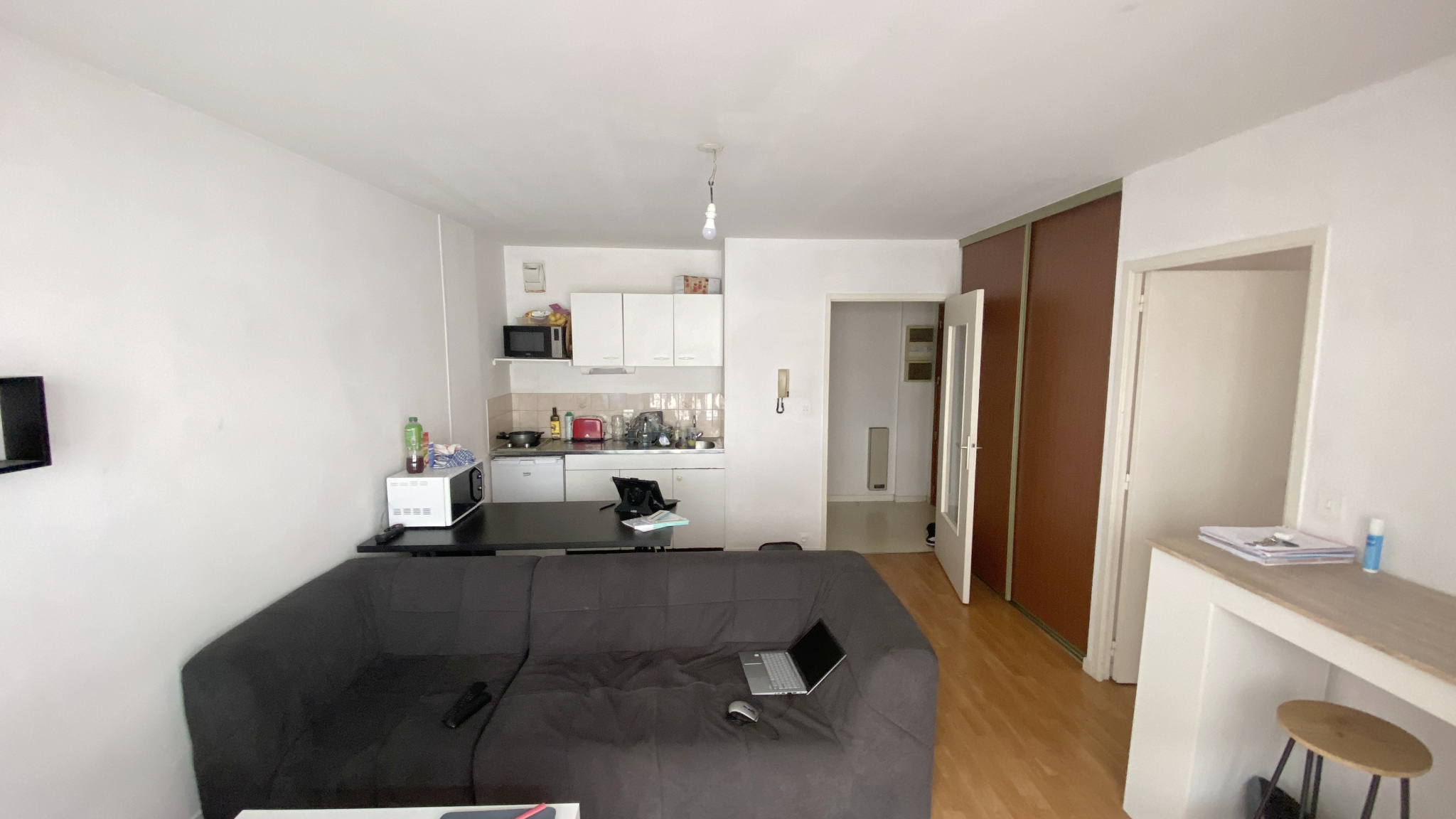 TYPE 2 EN DERNIER ETAGE Quartier Gare - rue de frémur Appartement entierement renové comprenant une cuisine ouverte sur la pièce de vie donnant sur balcon exposé Ouest, salle d'eau, une chambre, wc, grenier, cave et Box fermé.
