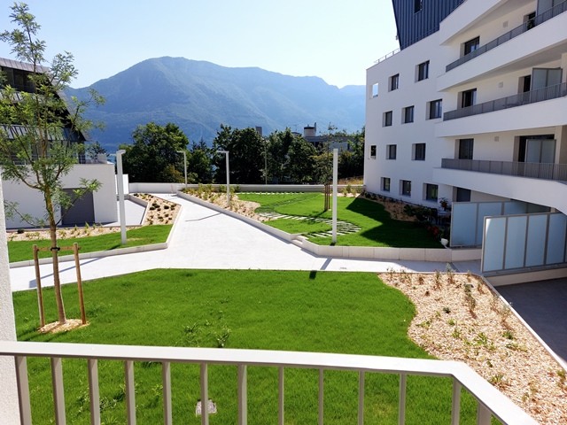 ANNECY AVANT SCENE, dans programme récent, lumineux T3 situé au 1er étage comprenant: une entrée avec placard, un salon séjour avec cuisine ouverte équipée (plaques, four, hotte, frigo-congel,la...
