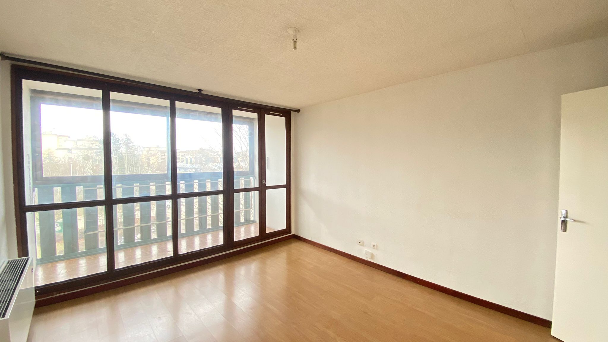 Appartement de 3 pièces avec séjour double et grand balcon sans vis à vis, une cuisine séparée avec loggia, 2 chambres, une salle d'eau et WC séparés.