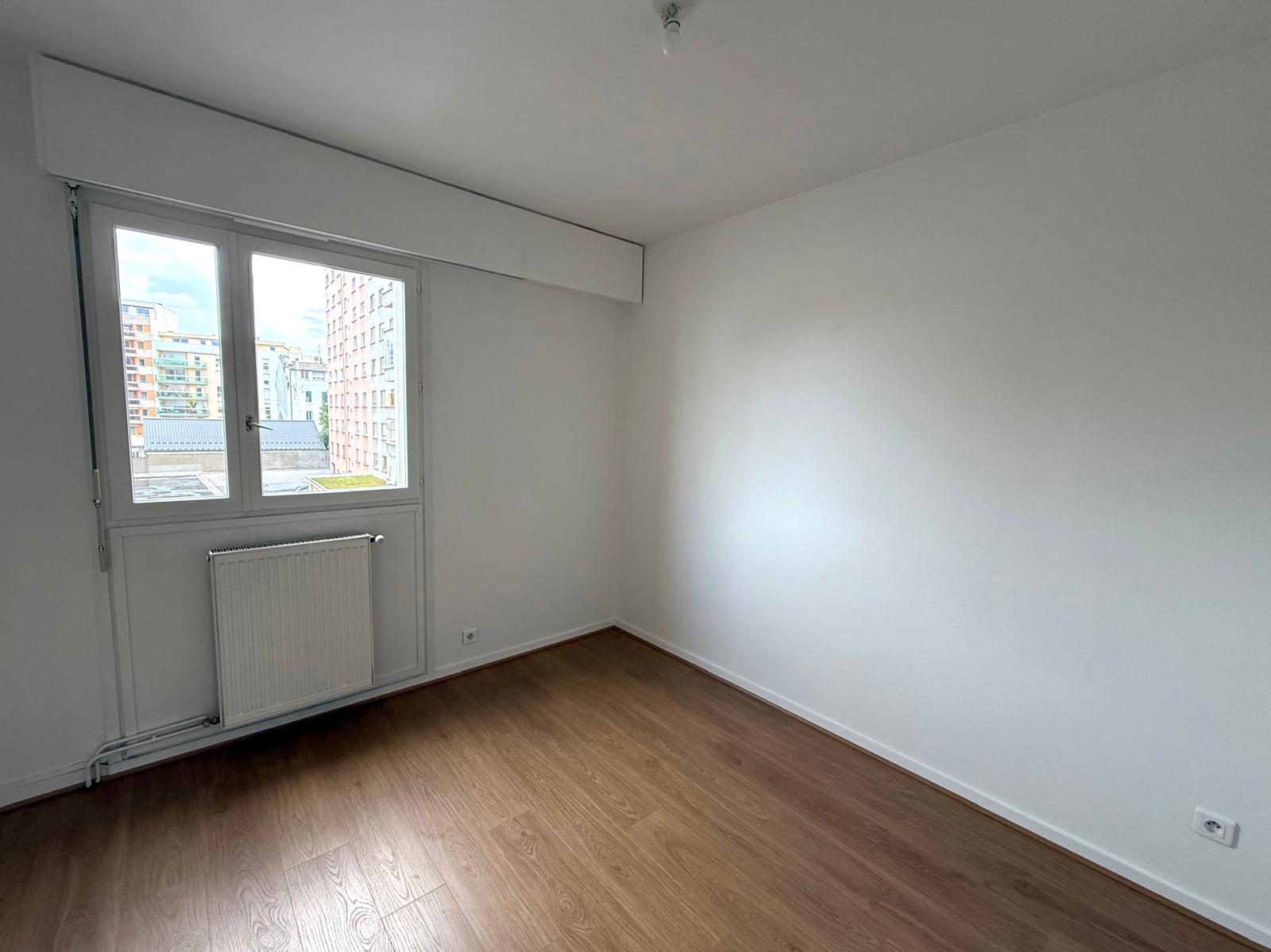 ANNEMASSE, rue du Joroux, à proximité des transports, du centre-ville et des écoles, à louer appartement 3 pièces traversant en étage élevé comprenant cuisine équipée semi-ouverte sur le séjour (hotte, plaques induction, réfrigérateur-congélateur, four traditi...