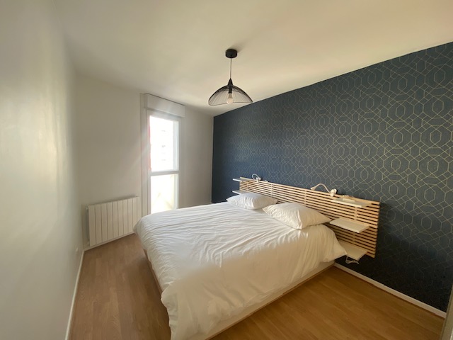 Appartement de 2 pièces dans une résidence de 2016 composé d'une entrée, d'une cuisine ouverte sur séjour, une chambre, une salle de bains et un WC séparé.