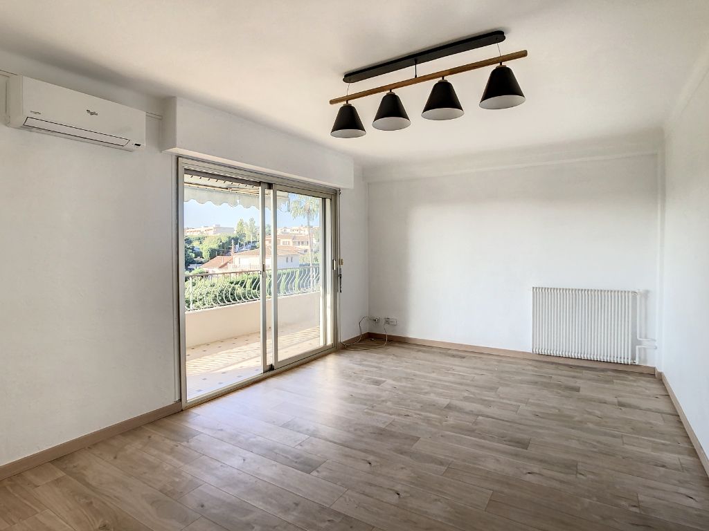 Juan les Pins, accès pietonnier à la mer loue joli studio meublé à l'année entièrement rénové comprenant hall d'entrée, salle de douche avec wc, pièce de vie avec cuisine tres équipée, belle terrasse au calme Climatisation réversible disponible de su...