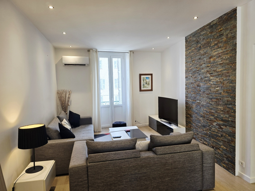 Disponible à la location 3 pièces 63.4 m² T3 VIEIL ANTIBES - À la location en plein cœur du centre d'Antibes, dans immeuble ancien, un T3 rénové de 64,42m² rénové au 3ème étage sans ascenseur.
