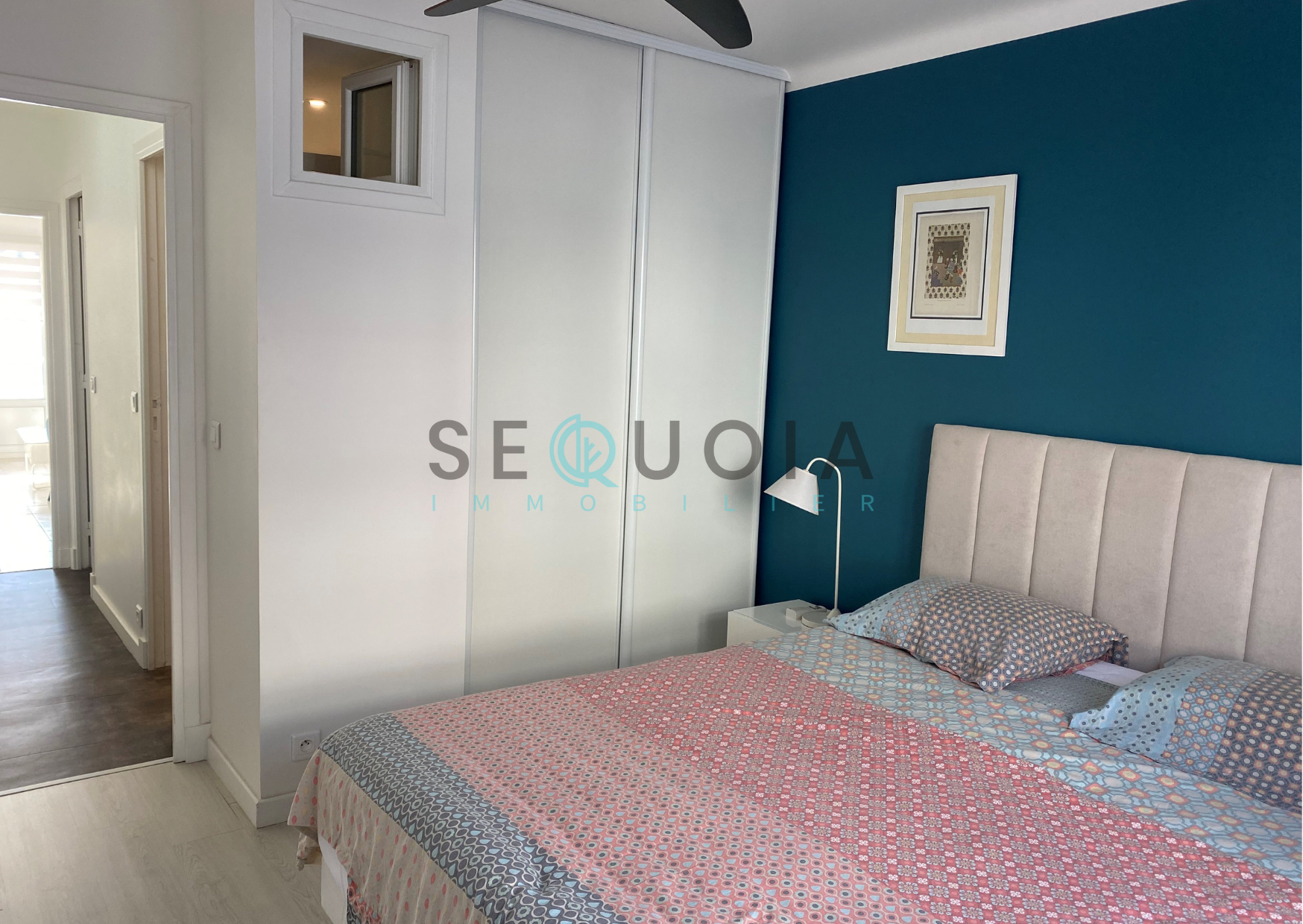 Location longue durée : proche du marché provençal, de la plage de la Gravette et de toutes les commodités, très bel appartement climatisé type 3 pièces loué meublé au deuxième étage (sans ascenseur) comprenant : un séjour avec cuisine américaine entièrement é...