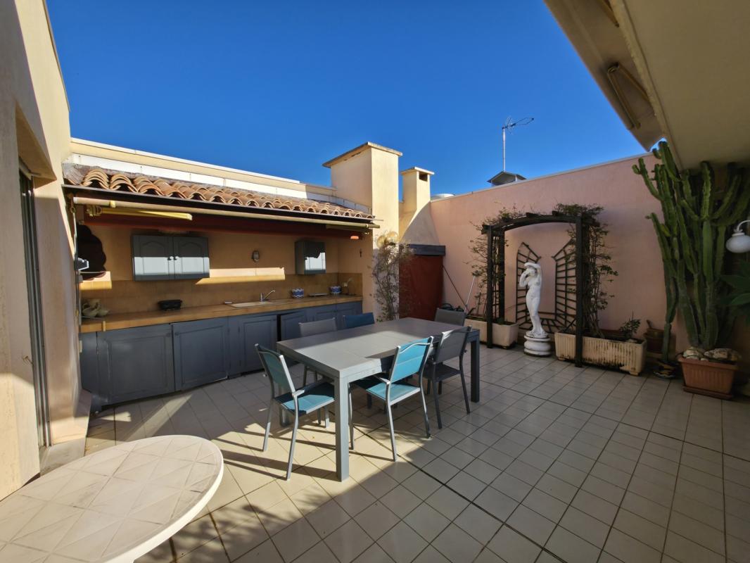 Au cœur de Juan les Pins grand 3 pièces avec grande terrasse. Entrée, cuisine donnant sur le salon, 1 chambre donnant sur la terrasse. Une salle de douches, toilette indépendant, une chambre. Une parking en sous-sol. Très proche de la gare SNCF, commerces au p...