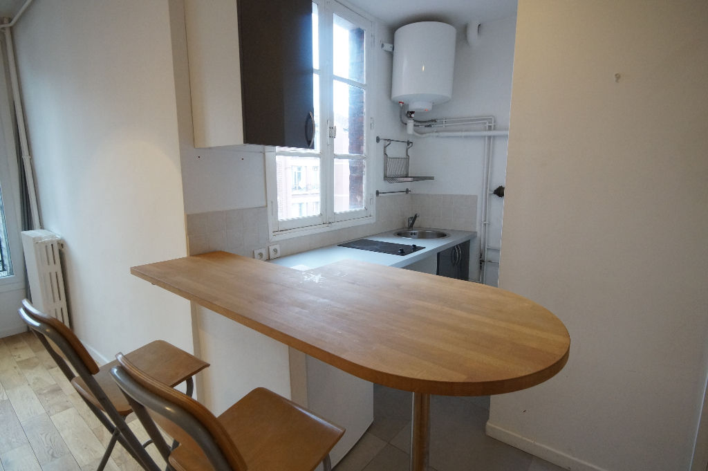 Studio - Asnières sur Seine - Rue de la Comète - Studio au cinquième sans ascenseur, comprenant une pièce principale, une cuisine aménagée et une salle d'eau avec wc. Cave en sous sol. Chauffage inclus.