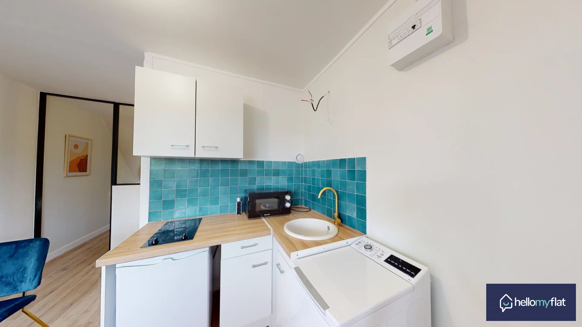 Dans un immeuble, au 2ème étage sans ascenseur, studio meublé d'une surface totale de 14,95m2 habitable composé d'un séjour, une cuisine équipée et salle de bains avec machine à laver et WC