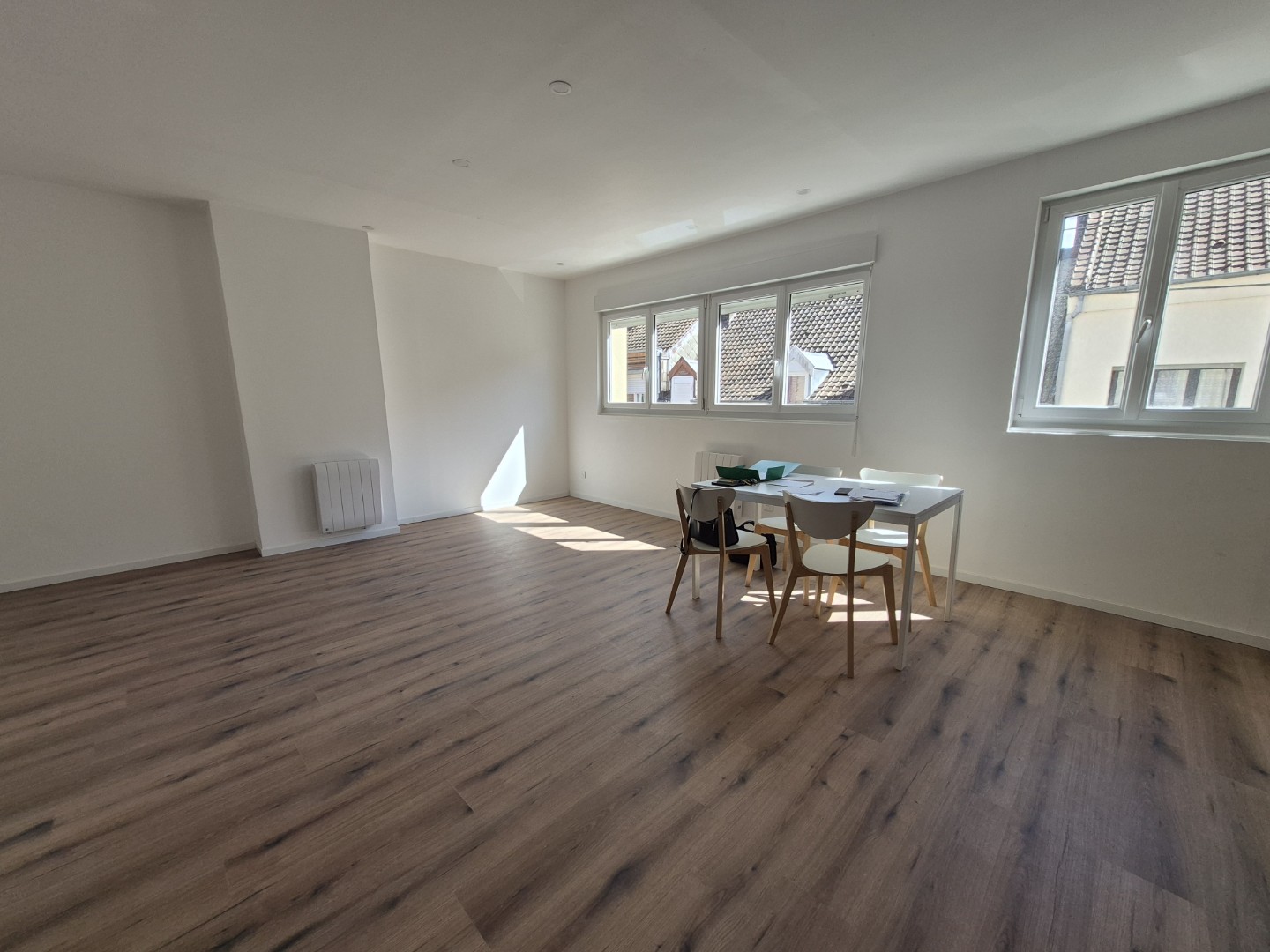 Auchel centre, à louer joli duplex entièrement rénové offrant une cuisine équipée ouverte sur le séjour, à l'étage, une grande chambre avec salle d'eau et wc. Le loyer comprend toutes charges (eau et électricité). Disponible de suite ! - Les informat...
