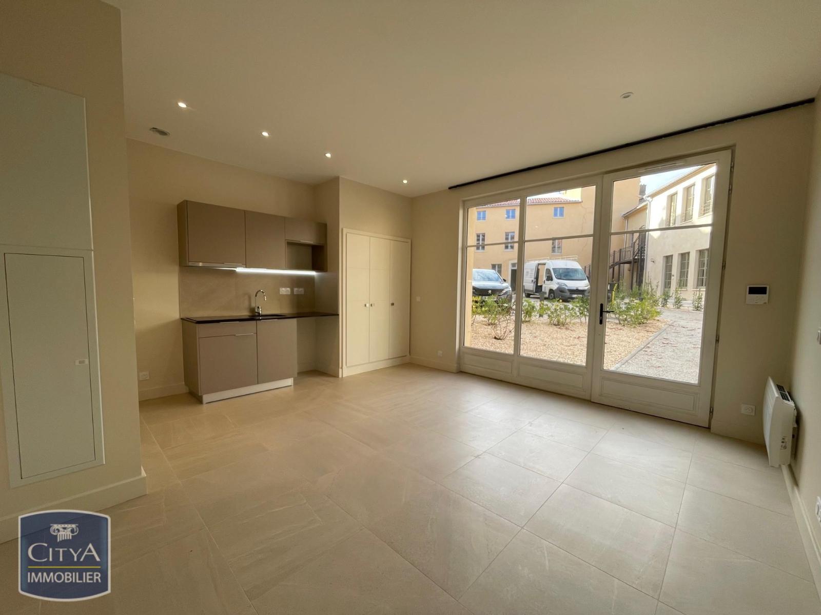 Rue Hoche, au sein d'un ancien monastère, appartement meublé d'environ 28 m² comprenant une pièce de vie avec une cuisine équipée (frigo et lave-vaisselle), un coin nuit avec rangement et une salle d'eau avec wc et machine à laver.