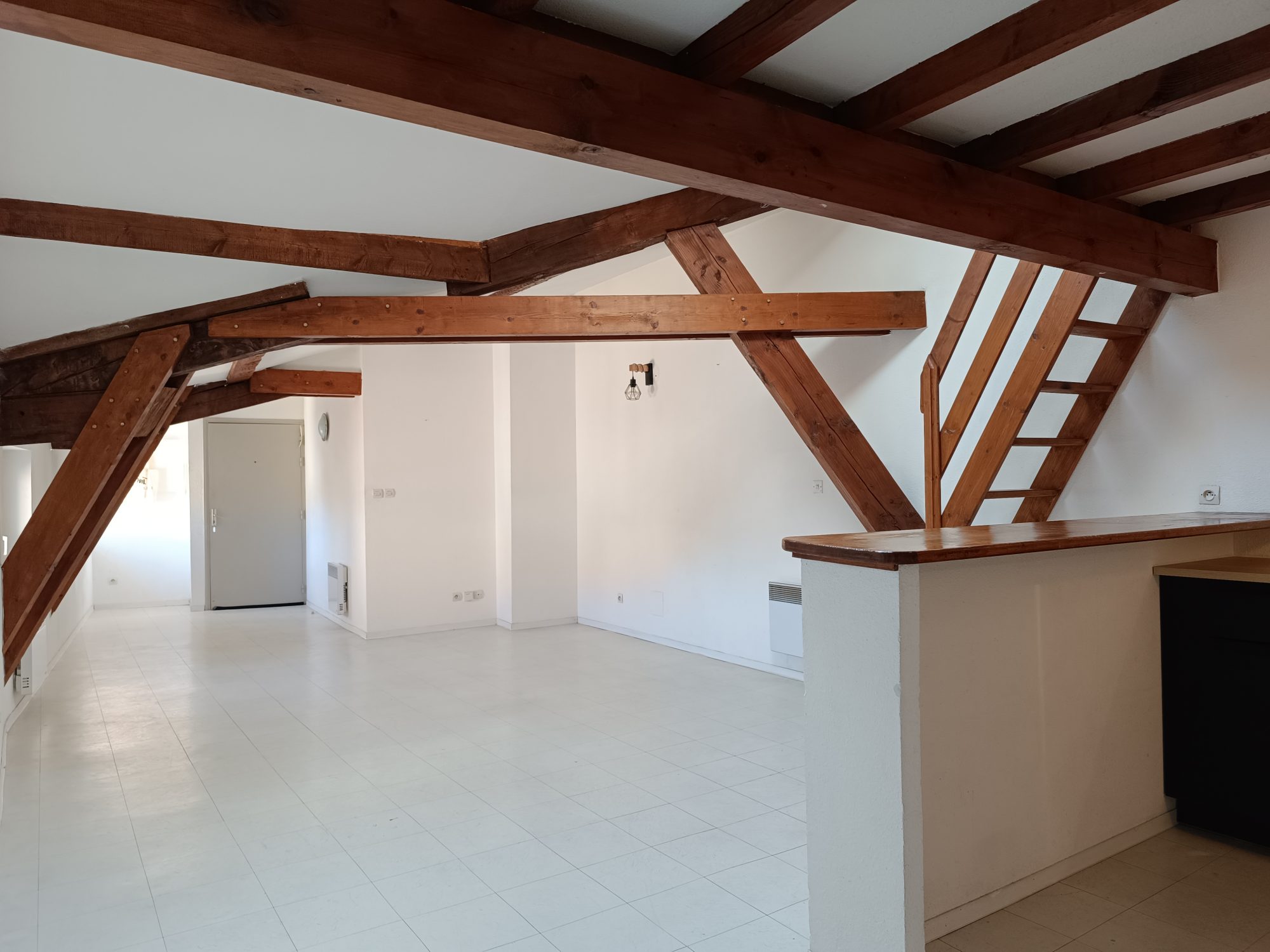 Disponible au 19/12 : Appartement 3 pièces dont une mezzanine composé d'une cuisine équipée ouverte sur salon, 1 pièce en RDC, 1 chambre en mezzanine, d'une salle d'eau avec WC.