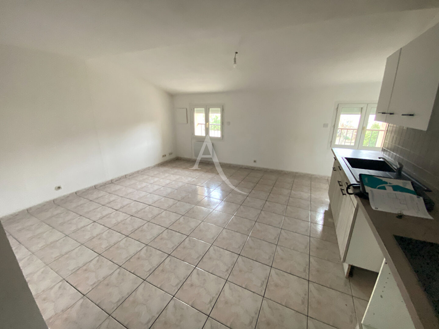 ref 24014 - MONTREDON DES CORBIERES - APPARTEMENT DE TYPE 2 EN REZ DE JARDIN DE 38.24M2 comprenant une entrée sur salon/séjour avec cuisine ouverte semi équipée (hotte + plaque de cuisson) donnant sur un jardinet privatif, une chambre, une salle'd'ea...