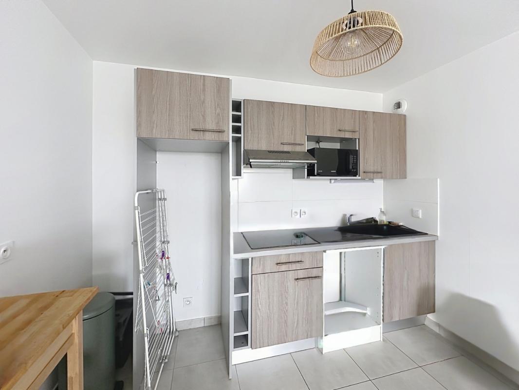 Il se compose d'une entrée avec placard aménagé, une cuisine aménagée et semi-équipée (hotte et plaque vitrocé...