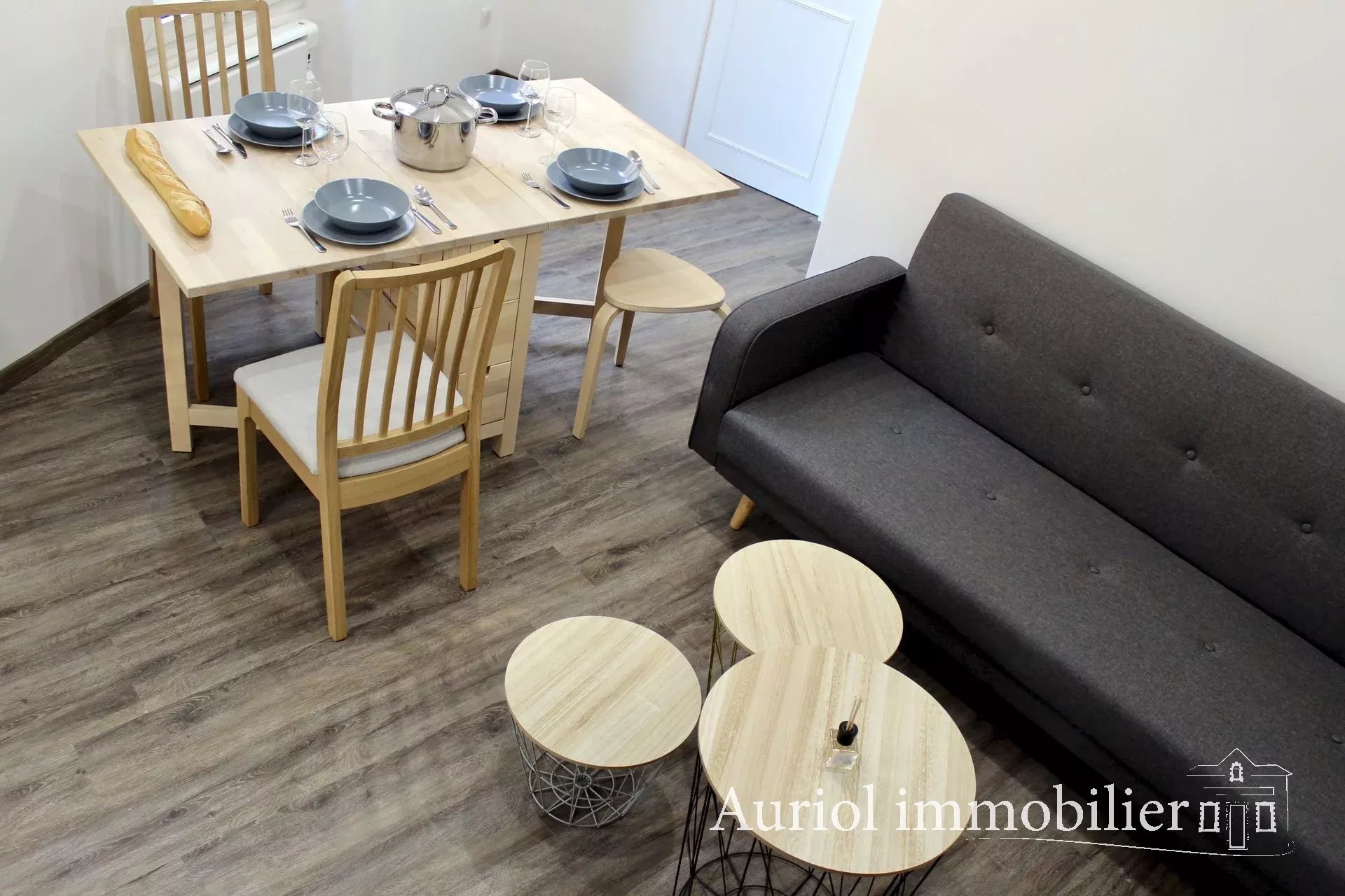 AURIOL - L'agence Auriol Immobilier vous propose ce très bel appartement, T2/T3 meublé au 1er étage. Le bien, d'une surface habitable de 41,95 m², se compose d'une entrée avec placard, une cuisine entièrement équipée ouverte sur séjour, une bell...