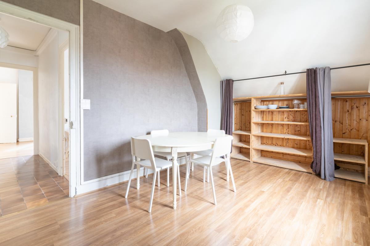 STUDIO MANSARDE : KITCHENETTE OUVERTE SUR PIECE DE VIE, SALLE D'EAU AVEC WC, RANGEMENTS