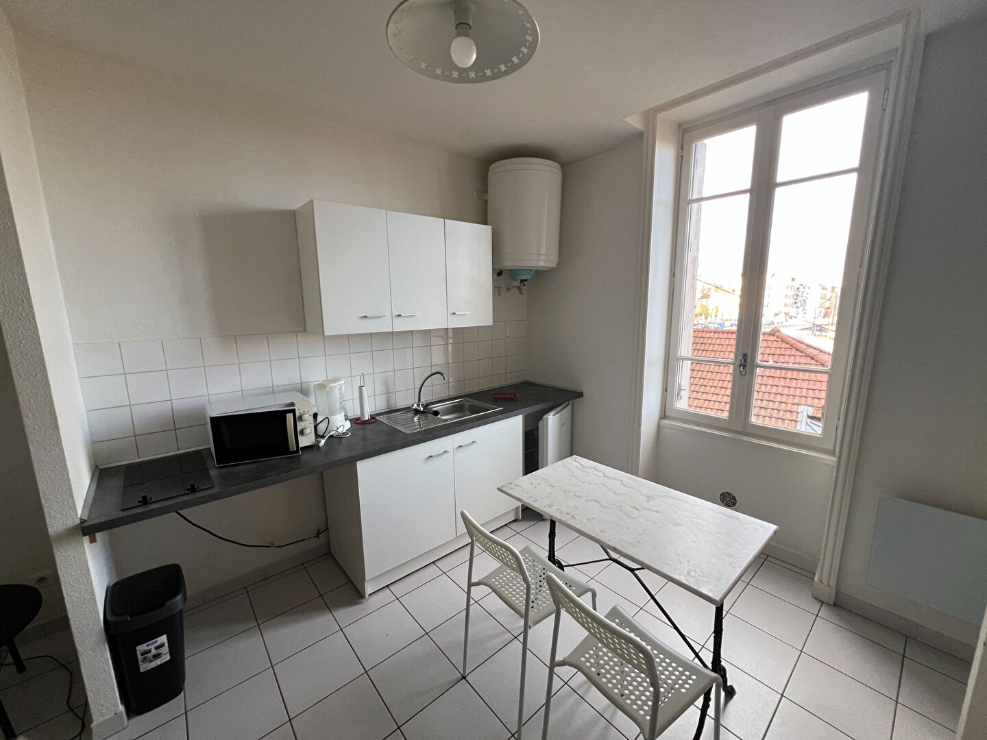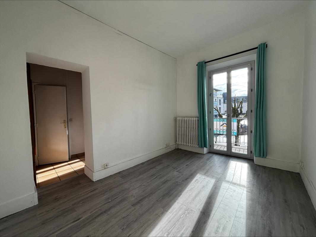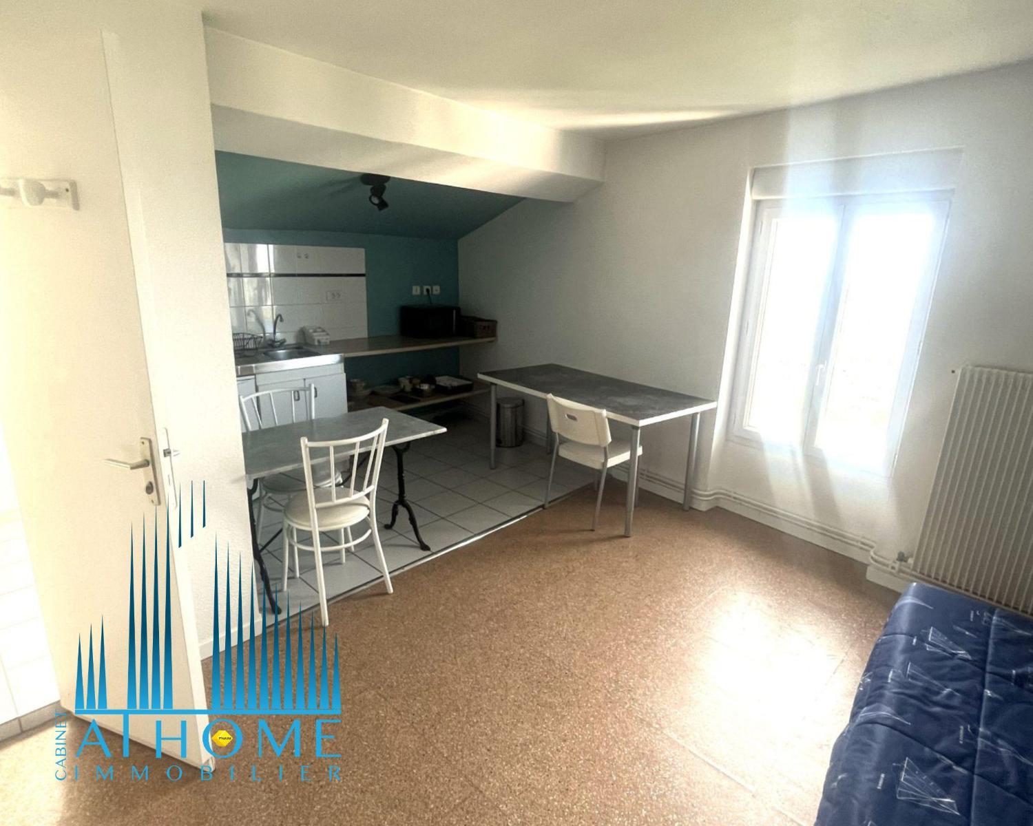 GANNAT centre, appartement avec un séjour ouvert sur cuisine aménagée, une salle d'eau, WC indépendant, équipé du double vitrage, chauffage électrique. Libre.