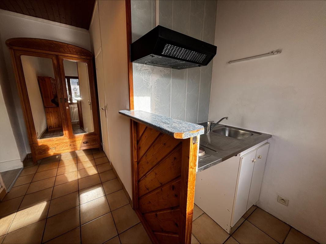 Saint Anthème centre, appartement T1 ,séjour/cuisine équipée 12 m² environ, chambre 12 m² environ, salle d'eau, wc indépendant - chauffage collectif au fuel avec comptage individuel. eau chaude individuelle. double vitrage, isolation.