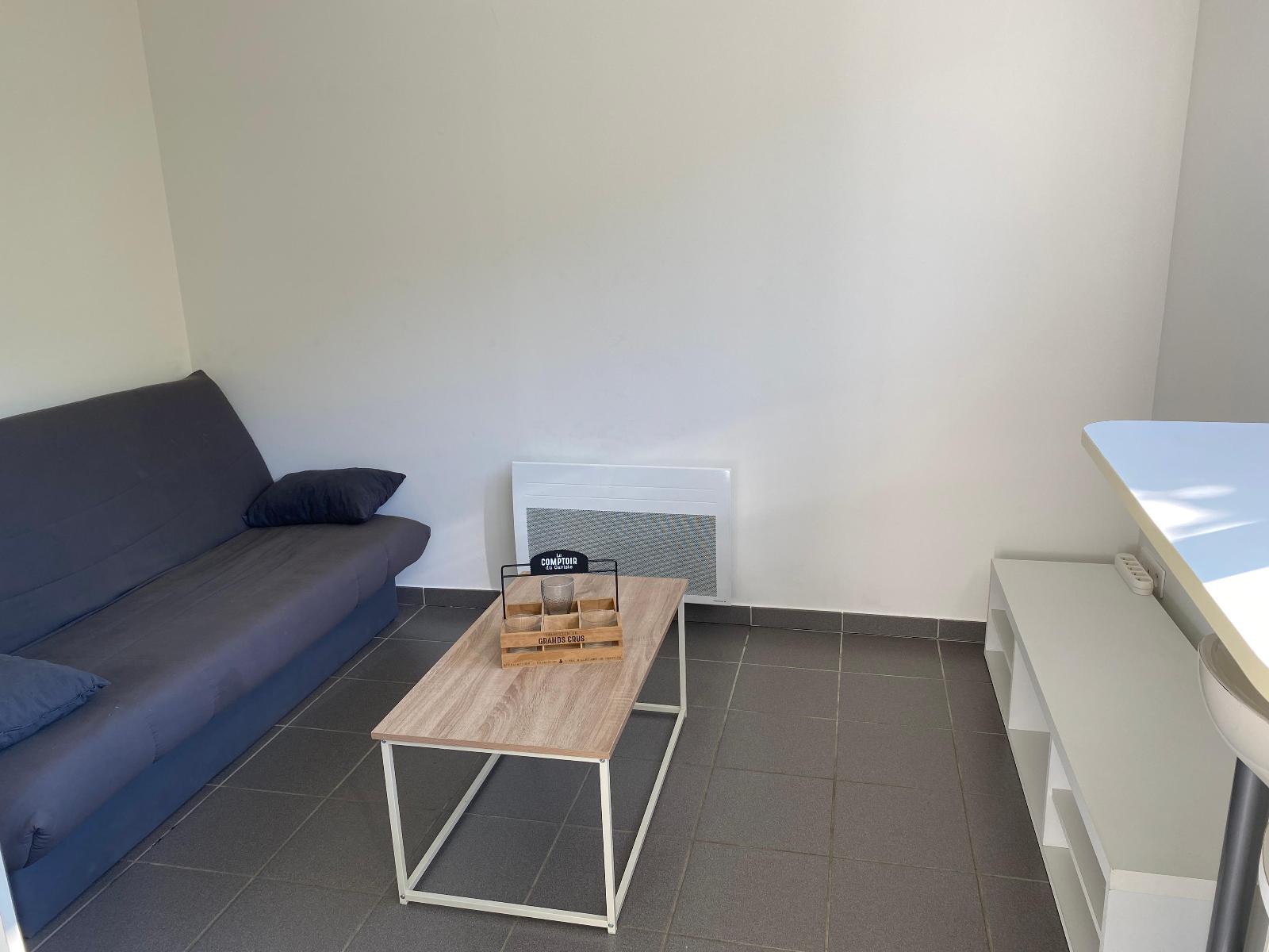 PRIVAS centre ville, appartement MEUBLE d'1 pièce comprenant 1 espace cuisine équipée fermé, un séjour avec espace nuit, rangements. Parking et commerces à proximité. Chauffage individuel.