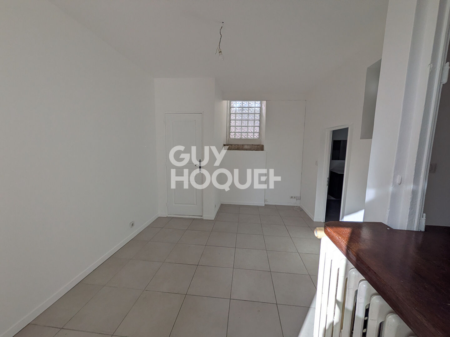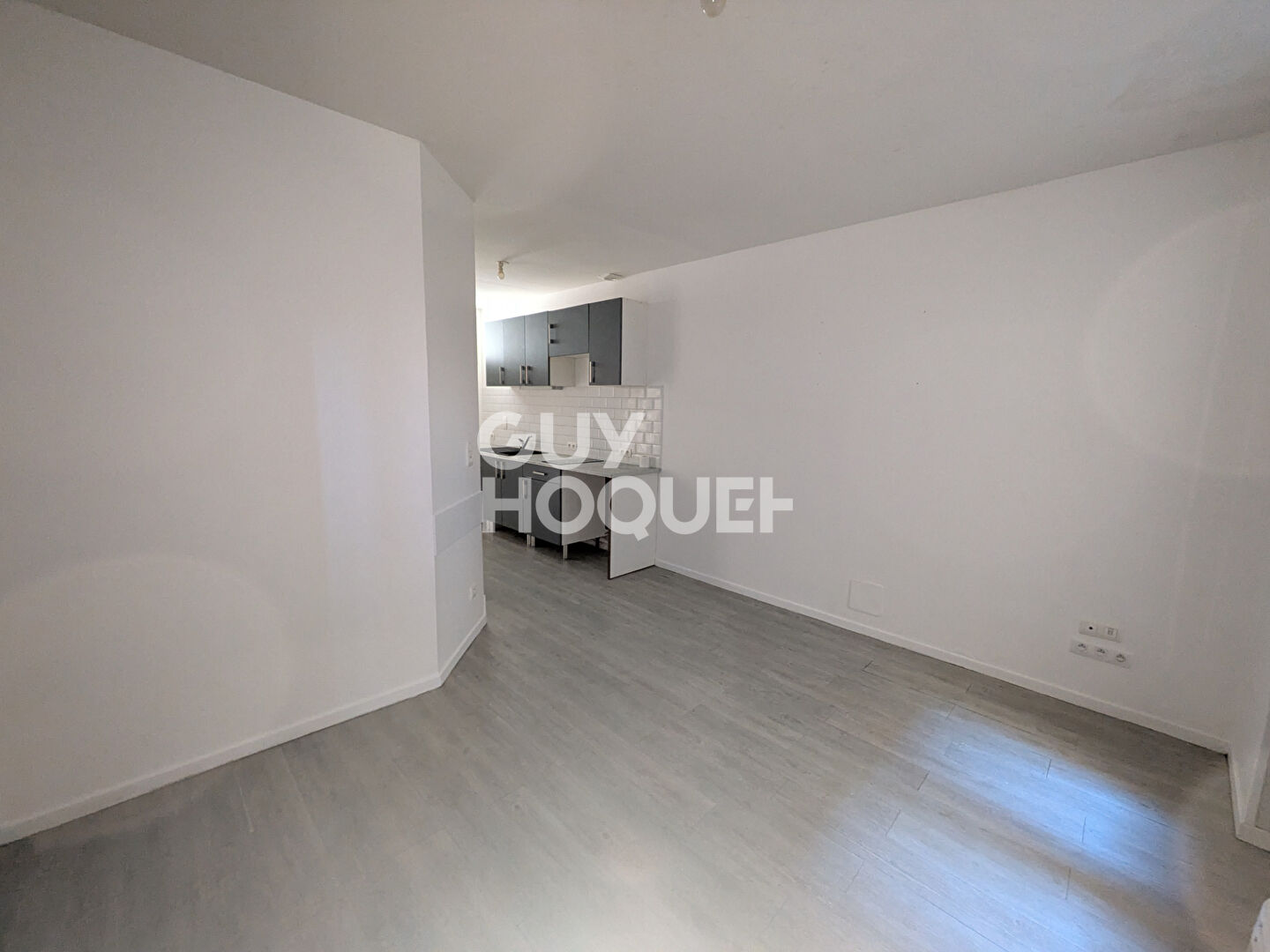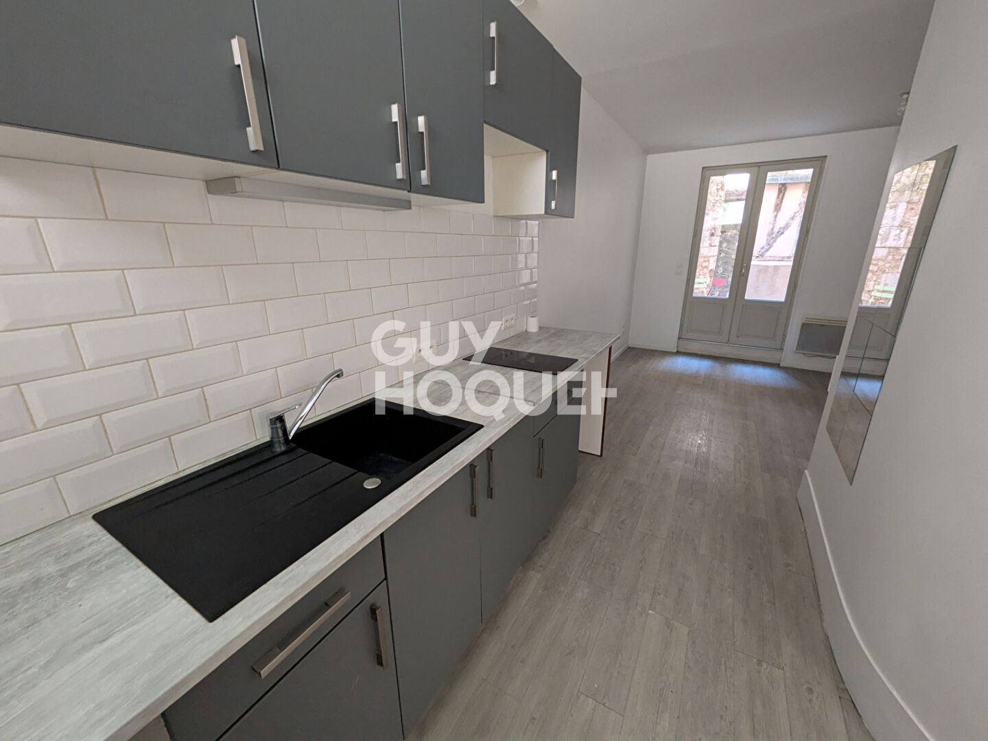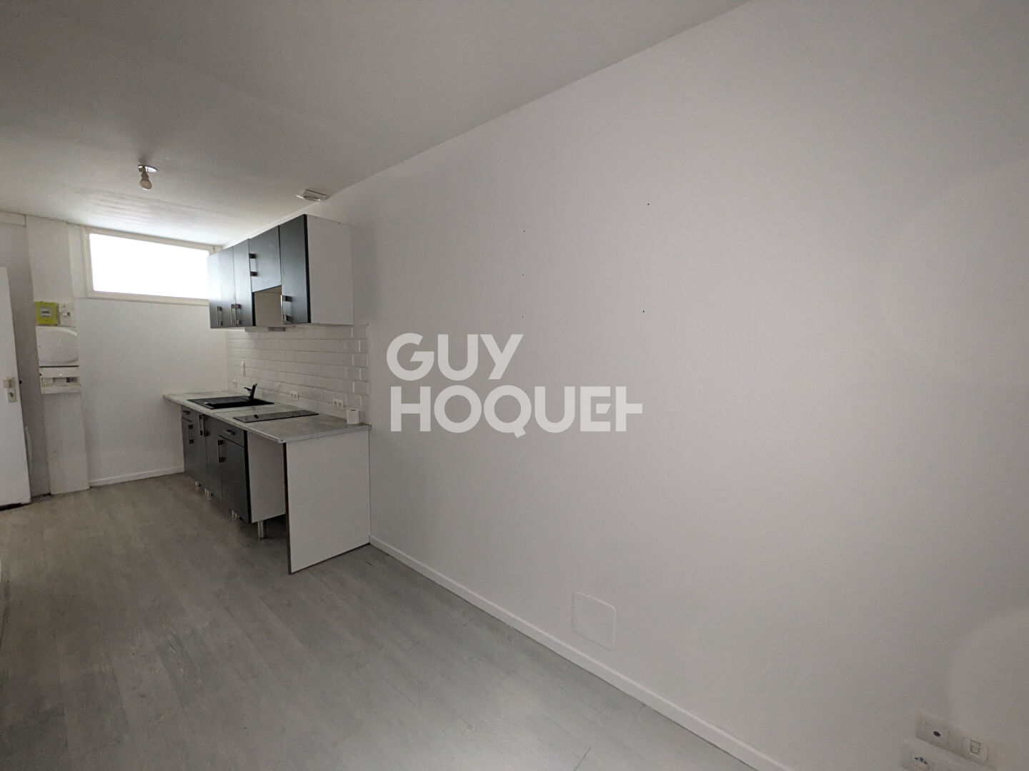 Quartier Palais de Justice, au premier étage sans ascenseur dans résidence rénovée, appartement comprenant une entrée, une cuisine aménagée et équipée (plaque, hotte et frigo) ouverte sur un salon-séjour, une salle d'eau avec wc.