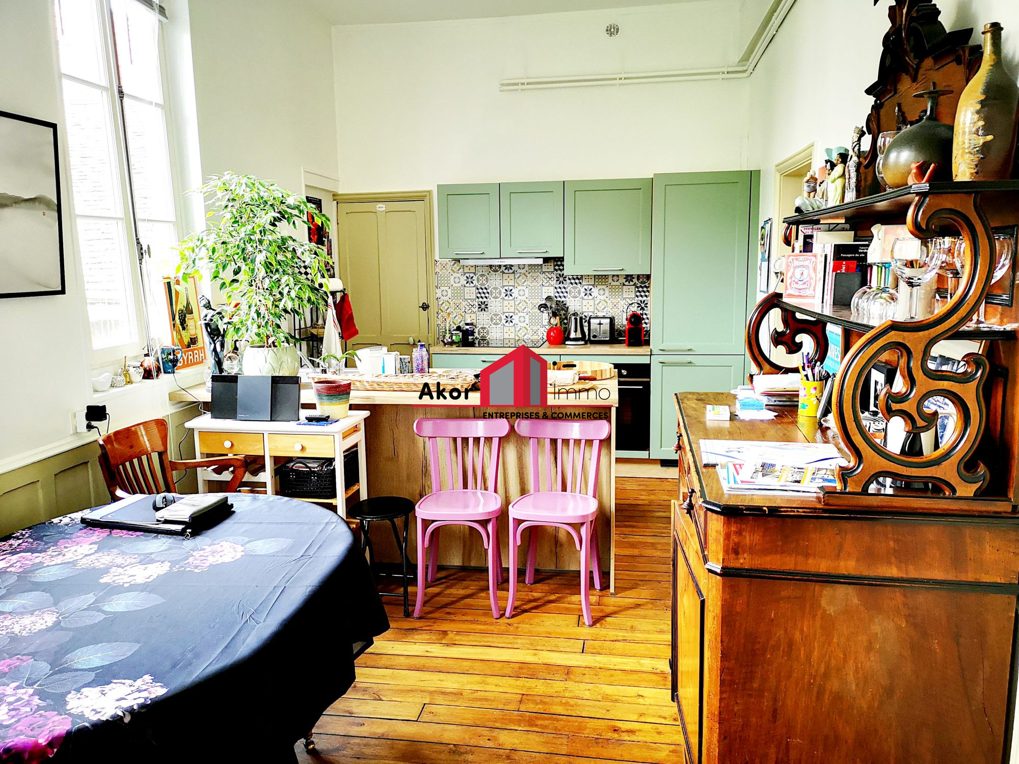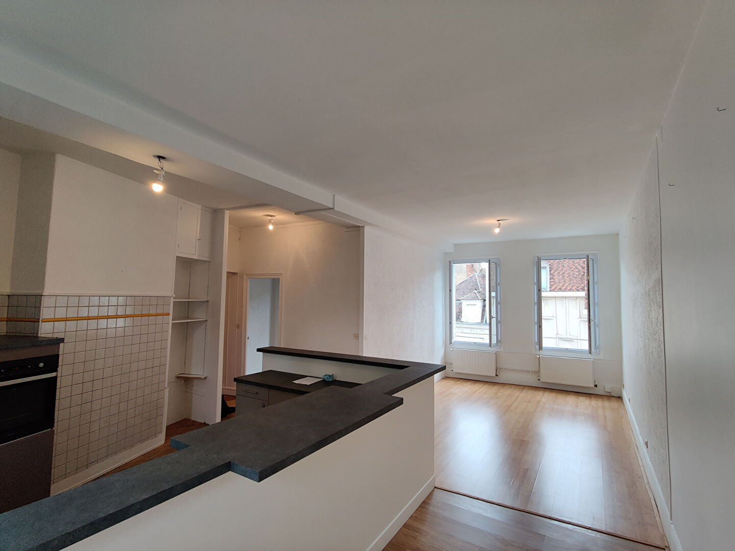 Auxerre, appartement au 1er et dernier étage entièrement meublé comprenant une cuisine ouverte sur séjour, une chambre, un bureau, une salle de bain avec WC.