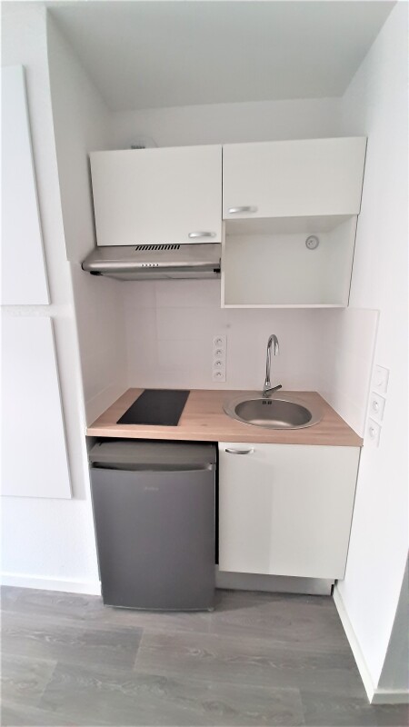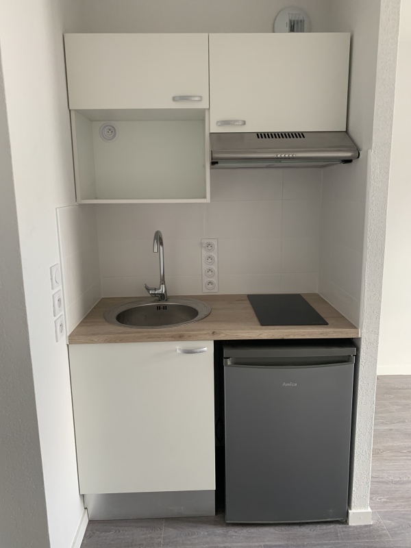 Proche du campus universitaire de RANGUEIL, T1 situé au 2ème étage avec ascenseur composé d'une entrée, séjour avec cuisine équipée (évier inox, plaque 2 feux, hotte, meubles hauts et bas, frigo top), salle d'eau aménagée avec WC. Le log...