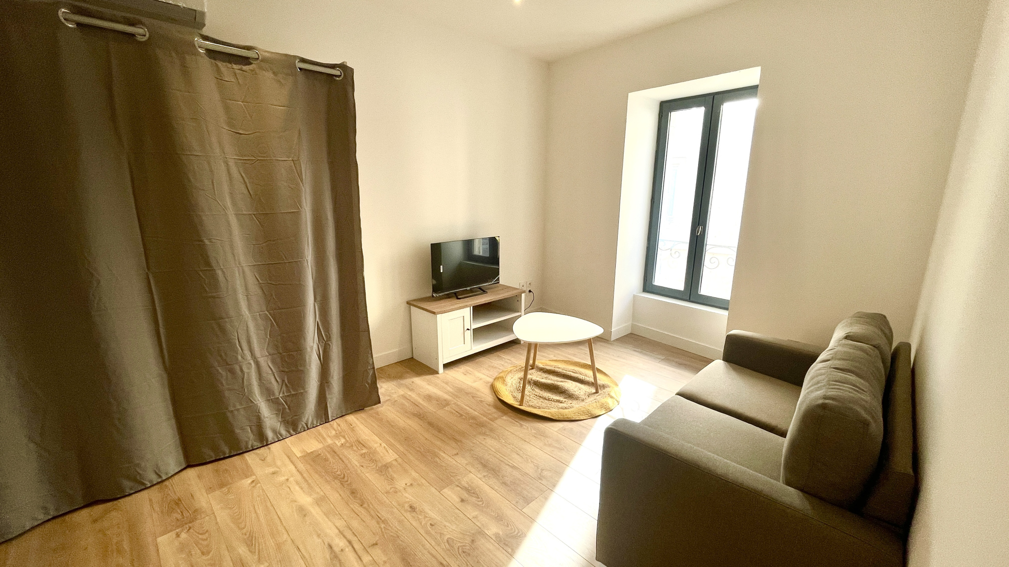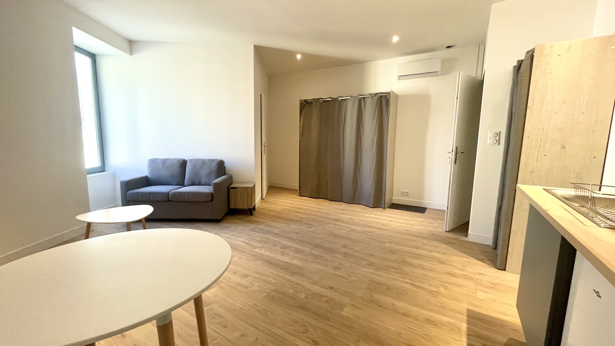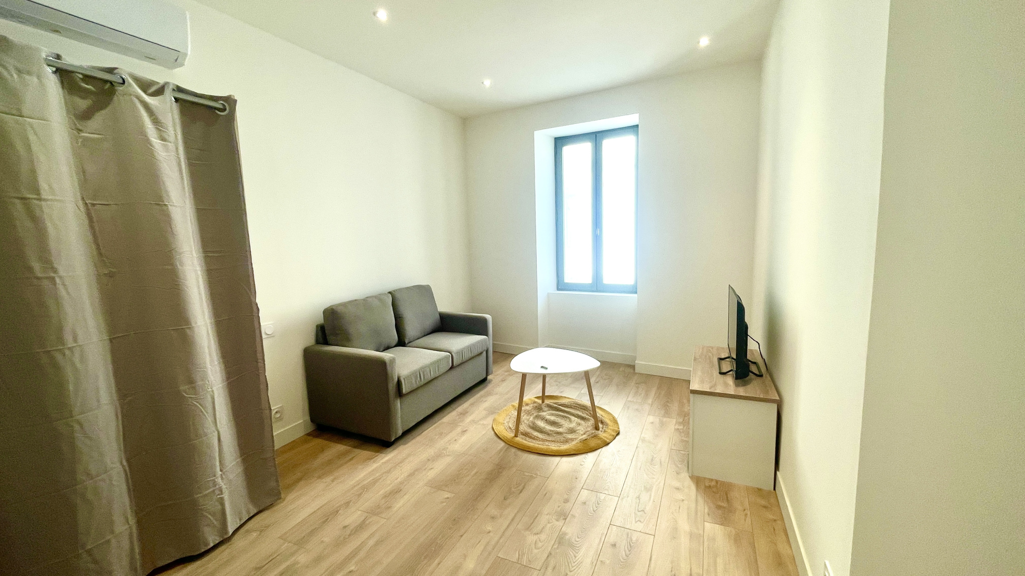 Bagnols-Sur-Cèze, spacieux studio meublé de 25 m2, entièrement rénové, situé au 1er étage d'un immeuble en centre ville, sans ascenseur. Parking gratuit, supérette et tous commerces à proximité. Agreable pièce de vie comprenant la cuisine américaine, équi...