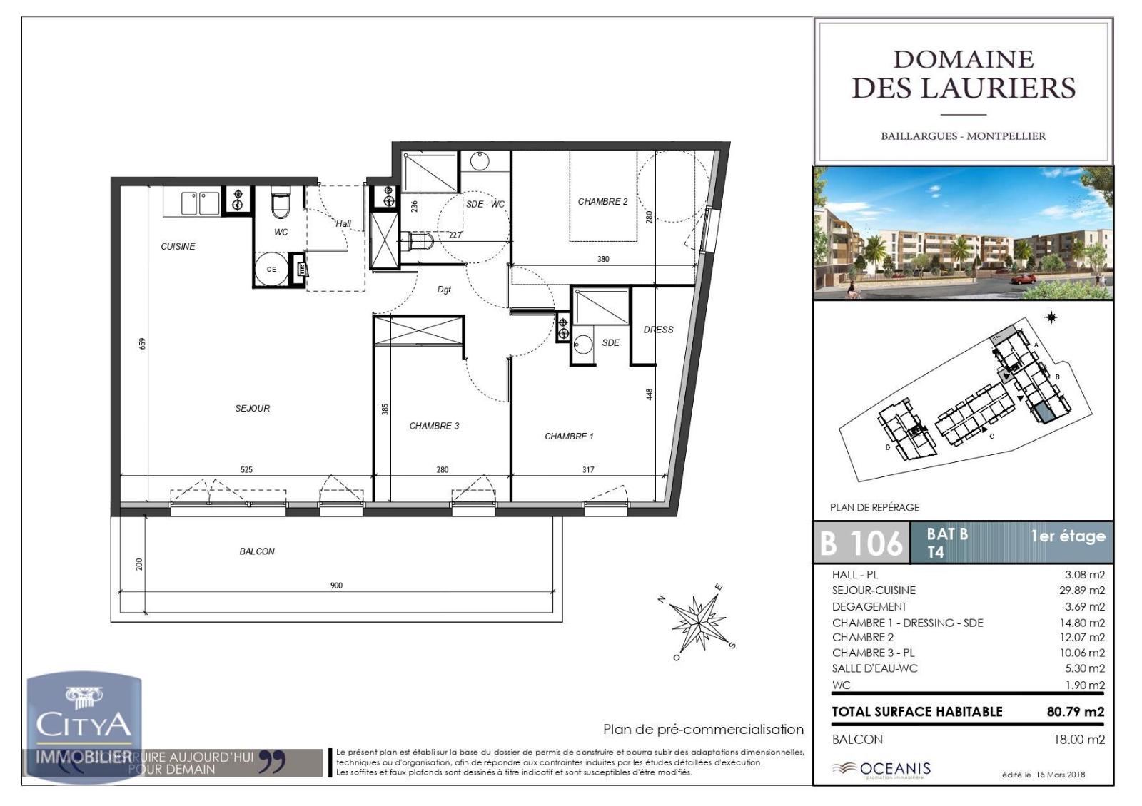 En location : découvrez cet appartement de 4 pièces de 80,79 m², comprenant une entrée avec placard, un séjour spacieux, une cuisine ouverte aménagée et équipée, une terrasse, un dégagement, tro...