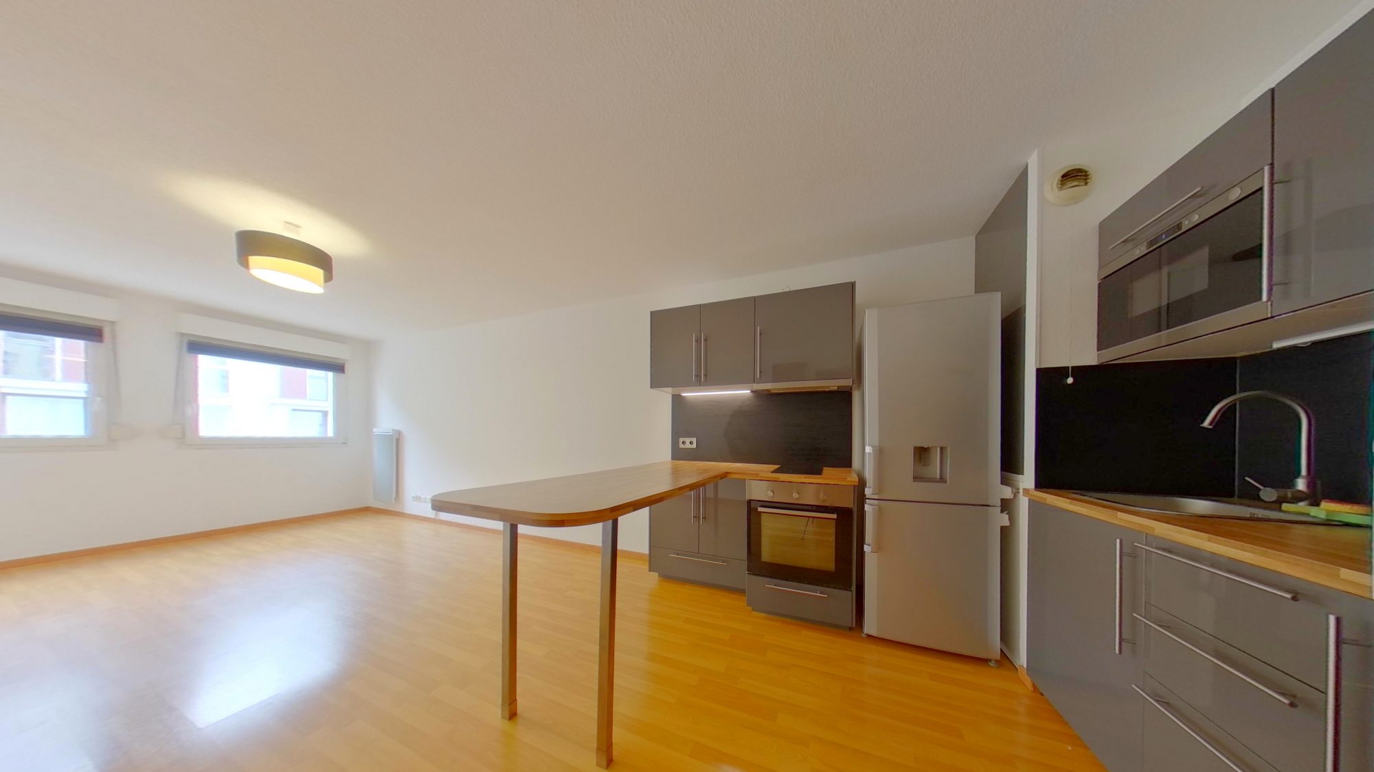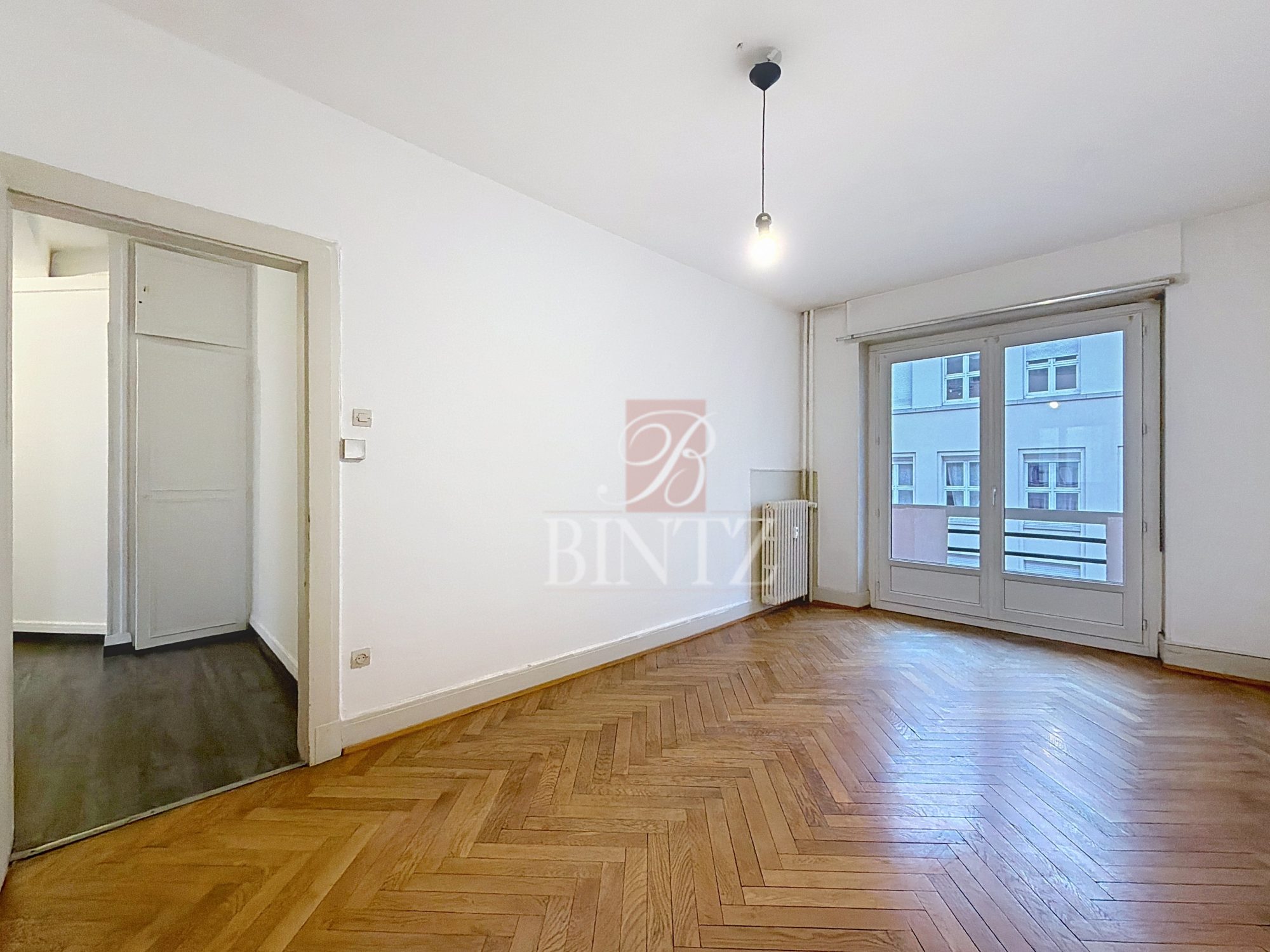 STRASBOURG - Rue des Magasins - Appartement 2 pièces de 46m² au 2ème étage comprenant : une entrée, un séjour, une cuisiné équipée (four, plaques, hotte, réfrigérateur et micro-ondes), une chambre, et une salle de bain avec WC.