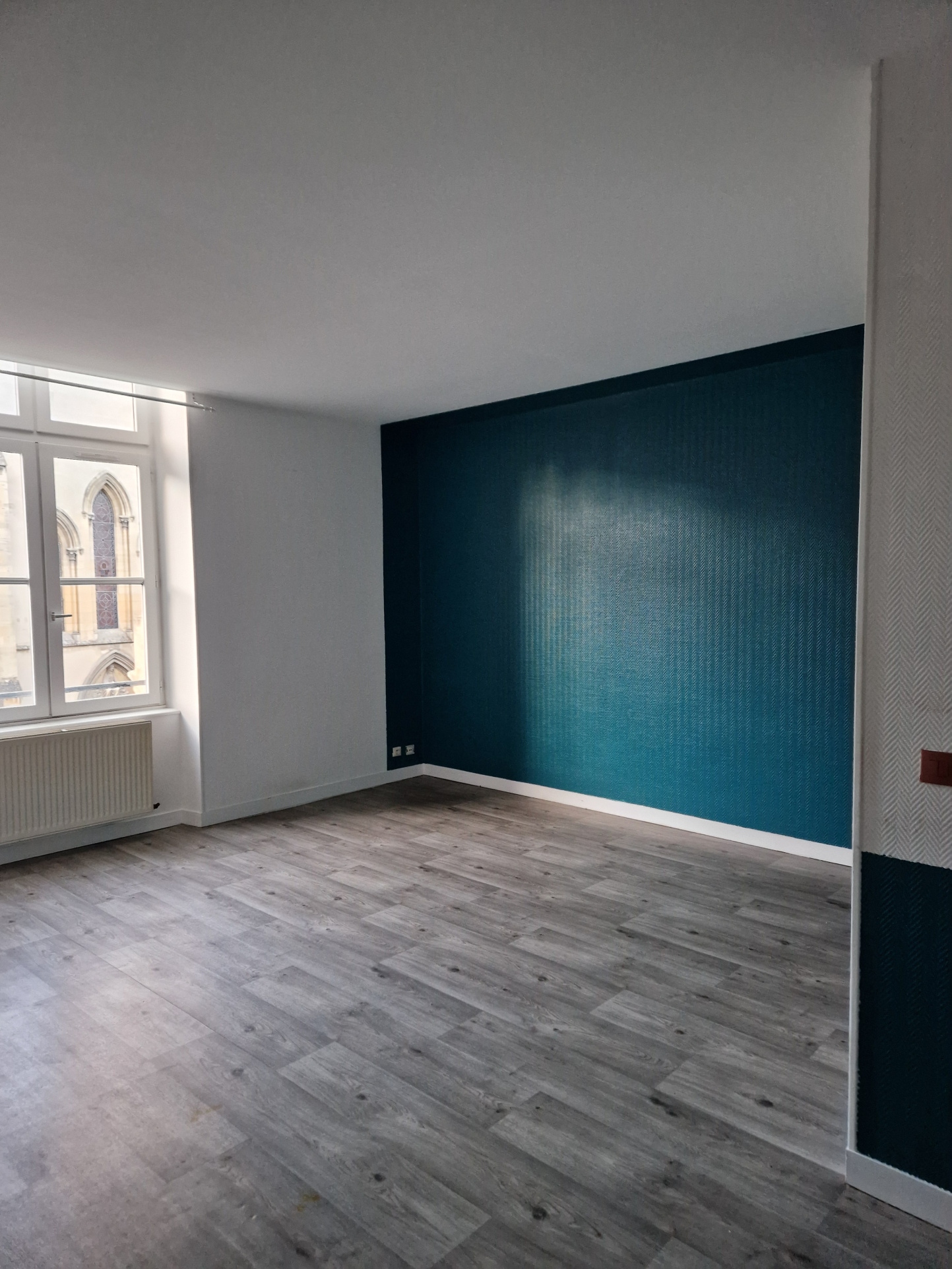 BAYEUX centre, grand F3 en RDC comprenant séjour avec cuisine américaine, 2 chambres avec grands placards, sde, wc. Parking. Chauffage au sol.