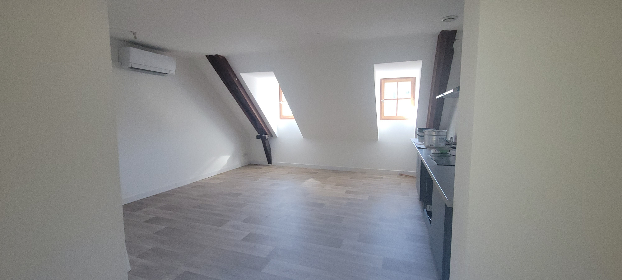 Centre de Beaulieu Sur Dordogne, proche commodités, appartement de type 3 entièrement rénové comprenant : Séjour / Cuisine aménagée et semi équipée (Hotte, Plaques vitrocéramiques), 2 Chambres avec placard/penderie, Salle d'eau avec cabine de douche, WC a...