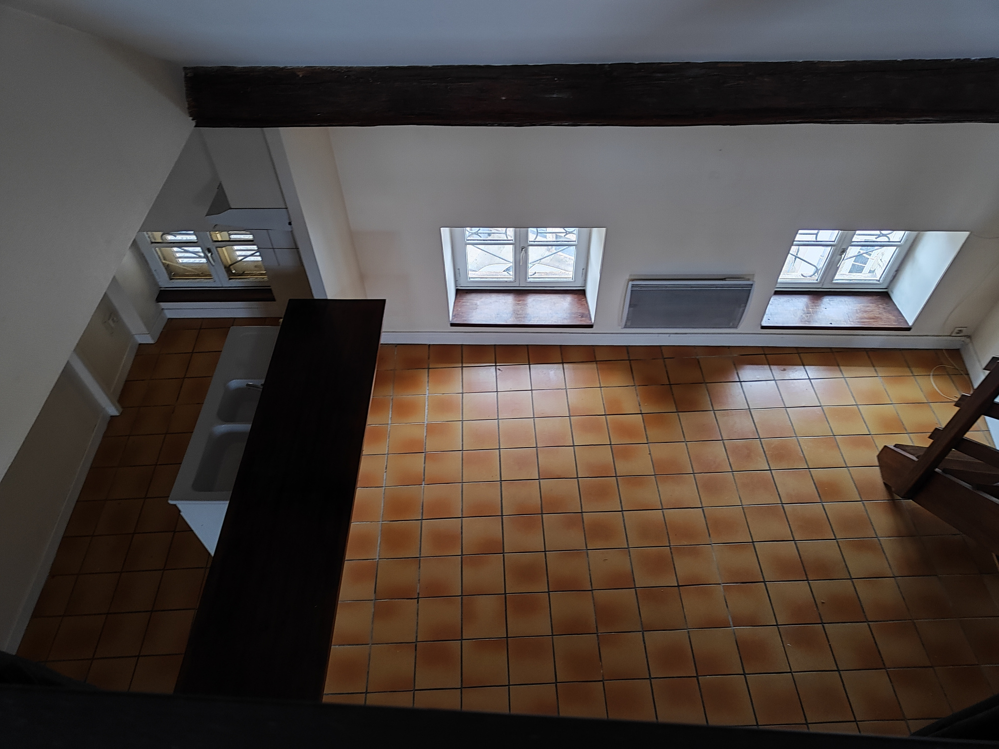T2 Beaune, place Marey, au 3ème et dernier étage d'un immeuble ancien. Appartement de 60,45 m2 comprenant grande pièce à vivre avec coin cuisine aménagé (éléments et hotte), salle de bains avec WC et espace nuit de 15,79 m2 en mezzanine avec placards. Cha...