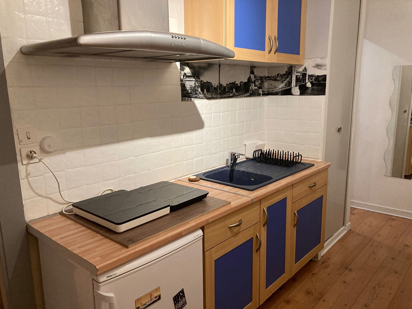 REF 419412 STUDIO, 7 Quai Vauban, entrée sur pièce principale avec cheminée d'ornement, Petite cuisine avec kitchenette et meubles, salle d'eau avec baignoire, lavabo et WC séparé en enfilade, chauffage individuel électrique, fenêtre double vitrag...