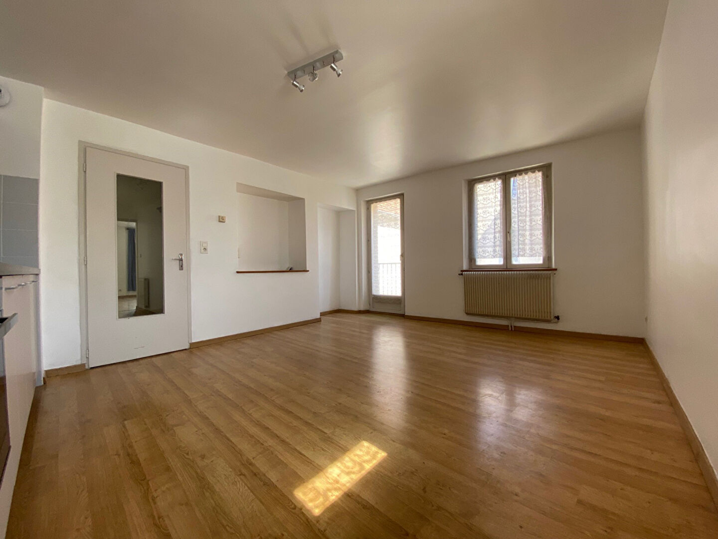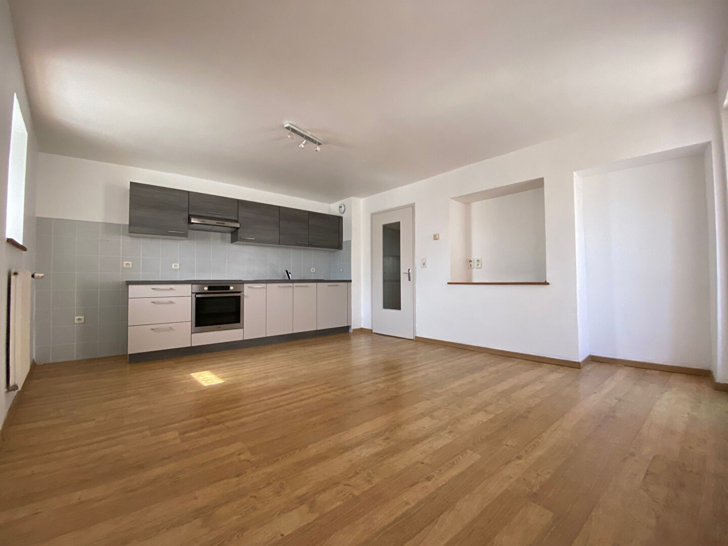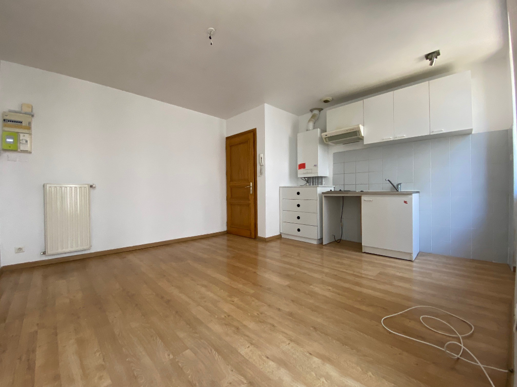 REF 166515 : T2 situé 91.93 Rue de Dole, entrée, cuisine équipée neuve, chambre séparée, salon, salle de bains (meuble vasque, douche, prise MAL, WC ), Parking, chauffage individuel électrique, Vélux neufs, électricité remise aux normes LIBRE