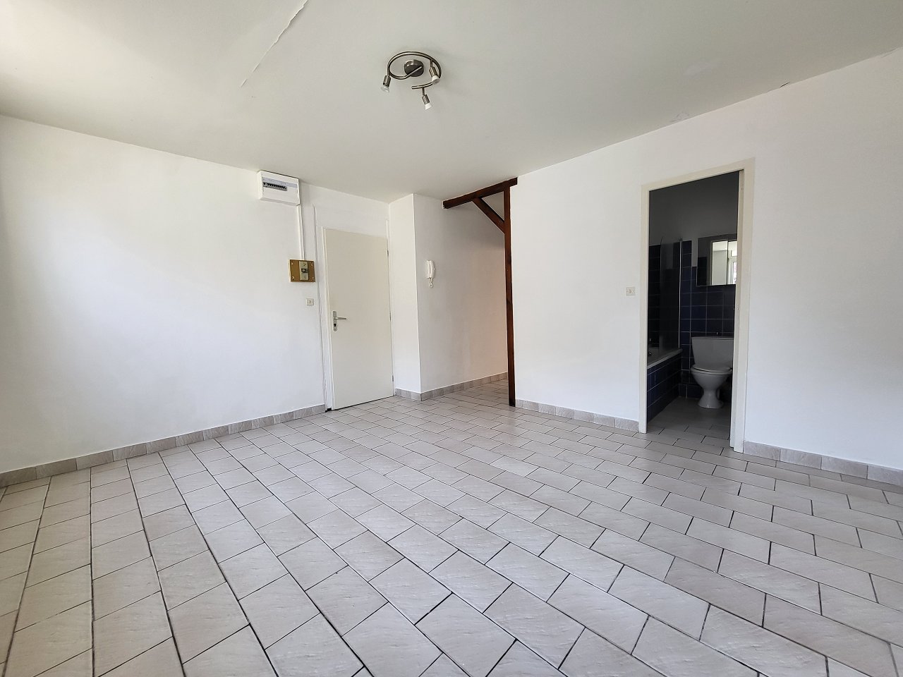 Proche centre ville et IUT : appartement de type 1bis en rez-de-chaussée : salon séjour, coin cuisine équipé, une chambre, sdb baignoire, cc électrique - libre<BR>Surface habitable 30,43 m²<BR>Loyer 450? par mois charges comprises<BR>Dont 0? ...