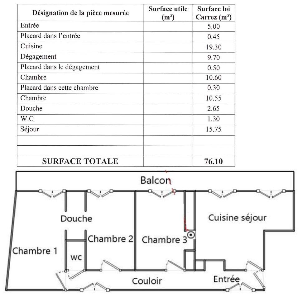 Rare à la location ! - 13, avenue des Voirons à Bons-en-Chablais, centre ville, face à l'église, appartement traversant de 76.10 m² au 3ème étage (avec ascenseur) comprenant : Entrée/couloir, cuisine fermée (four, plaque gaz, hotte), séjour séparé, 2 cham...