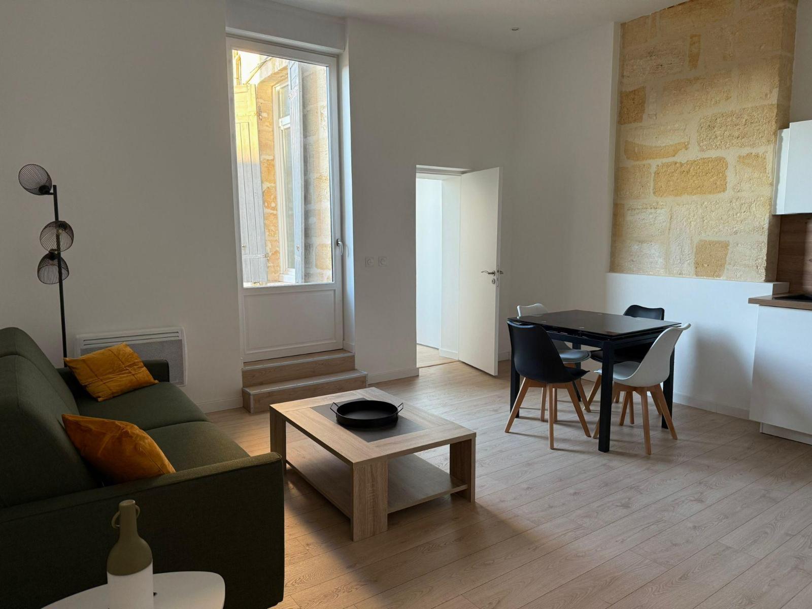 BX Hyper Centre - En plein centre de Bordeaux, à deux pas de la place Pey Berland, loue T2 meublé de 48m² au 2e étage d'un petit immeuble pierre. Il est composé d'un séjour avec coin cuisine équipée (plaques, frigo top, micro-ondes, vaisselle), d...