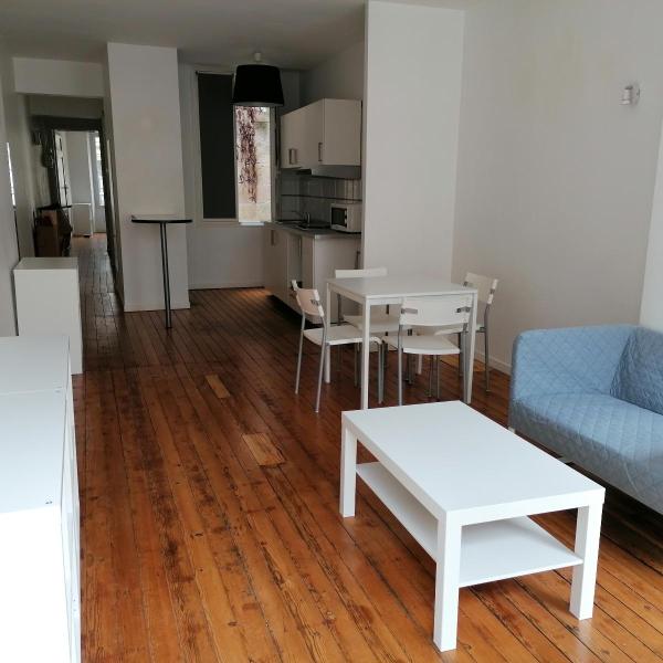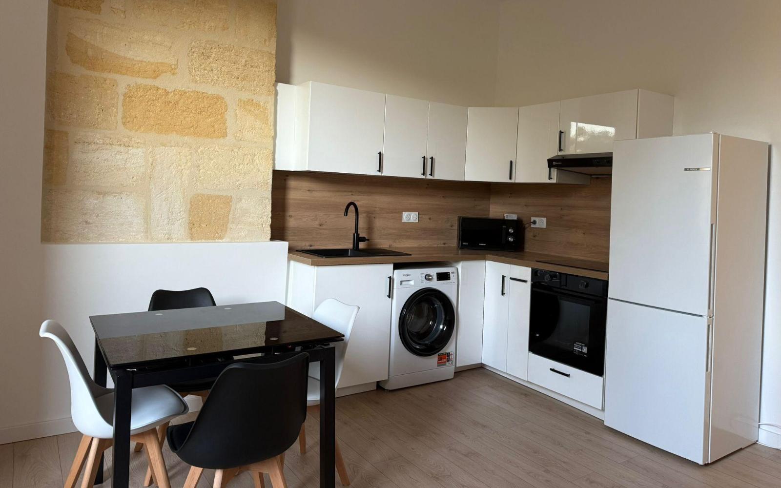 BX Victoire - Bordeaux, cours de la Somme, loue T1 meublé de 34m² au 2e étage et dernier étage d'un petit immeuble pierre. Appartement traversant avec entrée, séjour/chambre, cuisine séparée aménagée et équipée (plaques, frigo top, hotte, micro-ondes, vai...