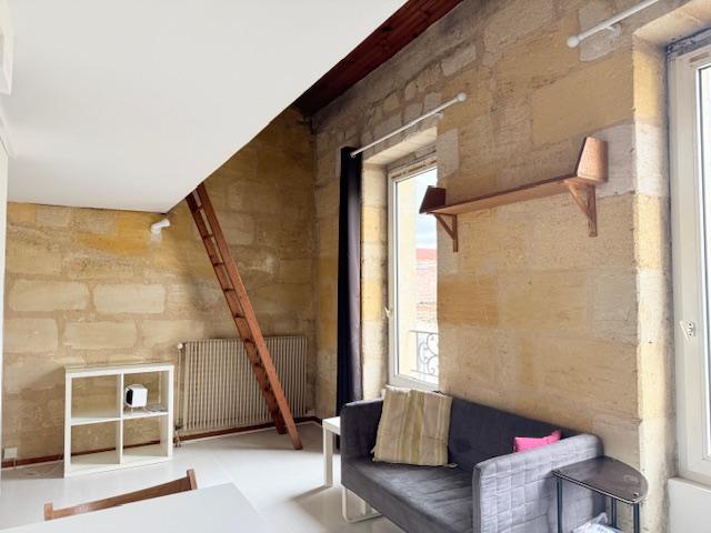 BX Victoire - A Bordeaux dans le quartier de la Place de la Victoire loue studio meublé de 17.50m² avec mezzanine (+8.5m² <1.80m) au 2e et dernier étage d'un petit immeuble pierre. Appartement clair donnant sur rue composé d'un séjour avec coin ki...